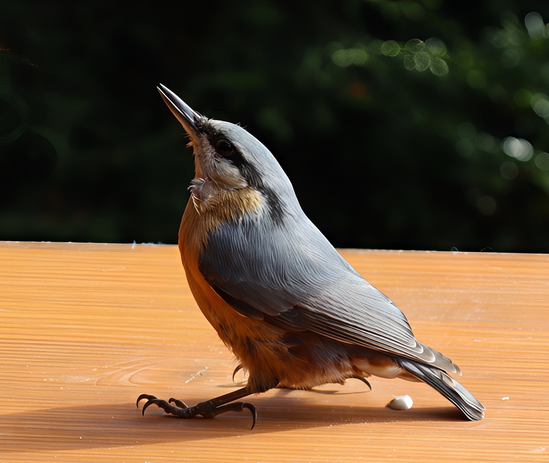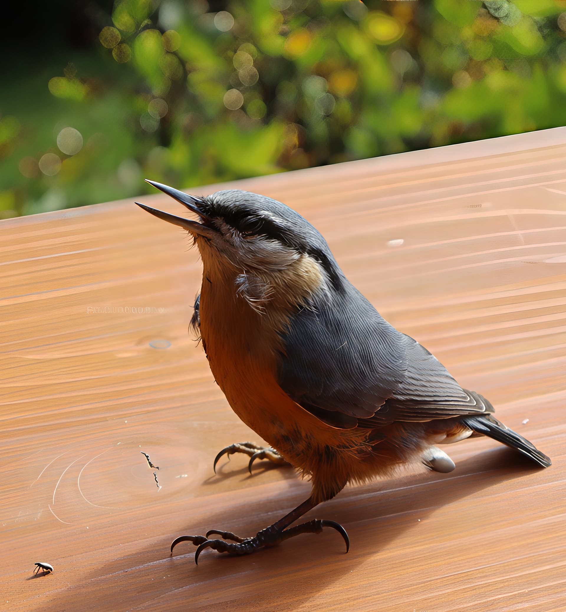 Today I was honored with a rare visitor – a shy bird named Nuthatch (Sitta europaea). This is a bird with the unique ability to climb down a tree trunk head first (i.e. downwards), not backwards. It came to have its portrait taken, paid with guano and flew away to its home in the near forest. I tried Topaz Photo 1.0.0; the Superfocus method improved the feathers. It looks “really real” as I could see it at very close range by my eyes.