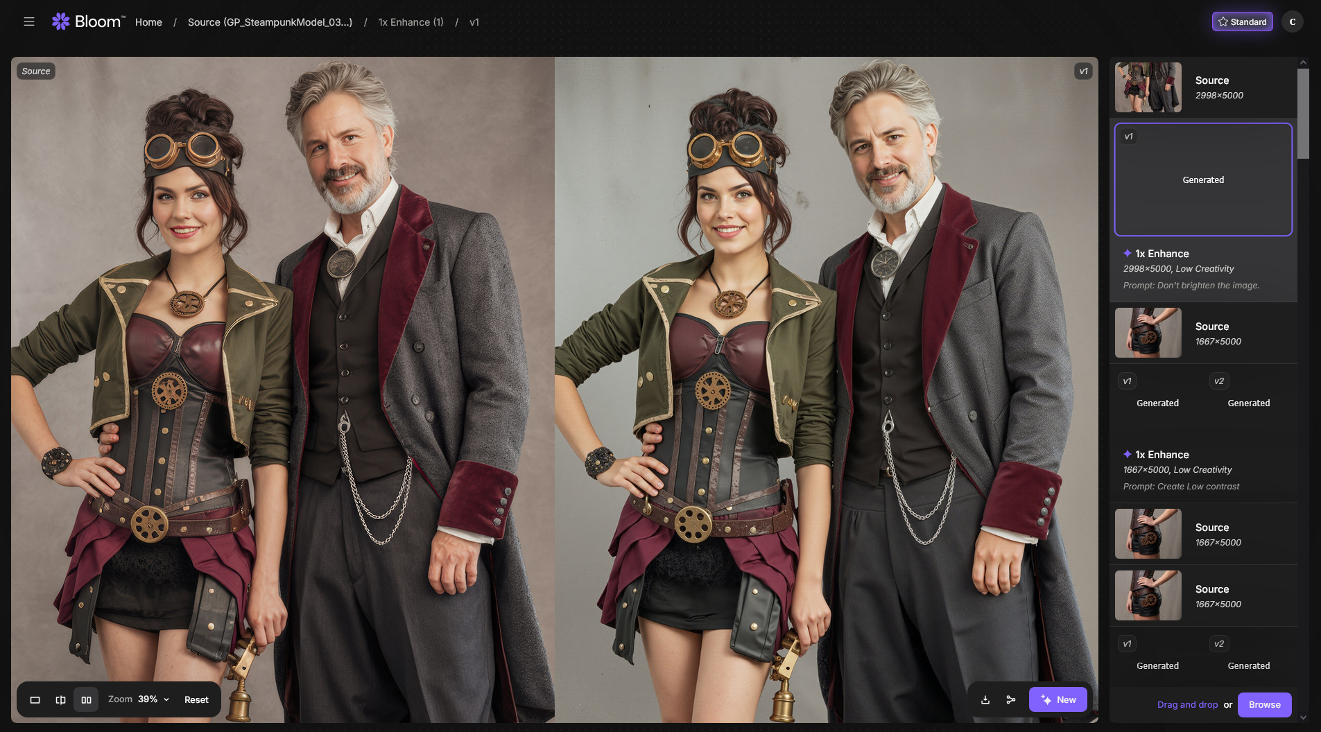 Bloom is great for fixing AI generated people, but a big problem - it brightens the image overall, overexposing faces. The detail adjustments are great, but why does it increase the overall exposure? It doesn’t respond to prompts at all, even when I type „Preserve original brightness and contrast, reduce highlight size“