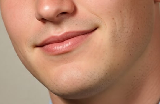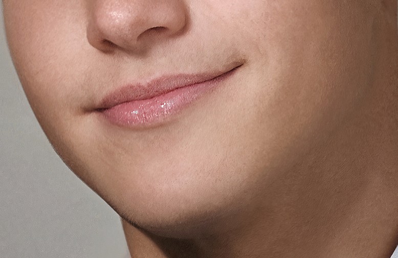 The version above the Stubble above and below the Lips and around the Chain are different textures and appear odd as do the Freckles if you can call them that or Spots