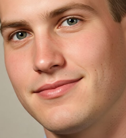This result has good skin & hair texture and sharpness and lips/eyes/brows look dimensional. But there’s still a bit of a plastic mannequin look (to me). I can’t put my finger on why it’s striking me that way. Maybe it’s too perfect vs the little flaws humans have. It could be that it looks like a very well (but heavily) retouched image of a person vs how you’d bet they look in real life. But it is amazing given the starting image!