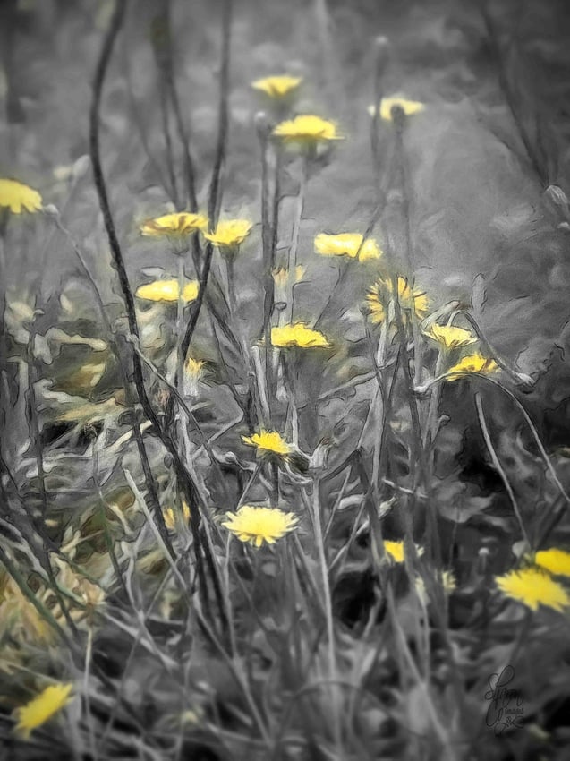 Great color choices in this image… the yellow flowers against the gray tones and contrasts make them pop nicely.