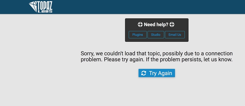 Are you still having this issue? Sometimes when the Topaz site is acting up maybe this is the cause?