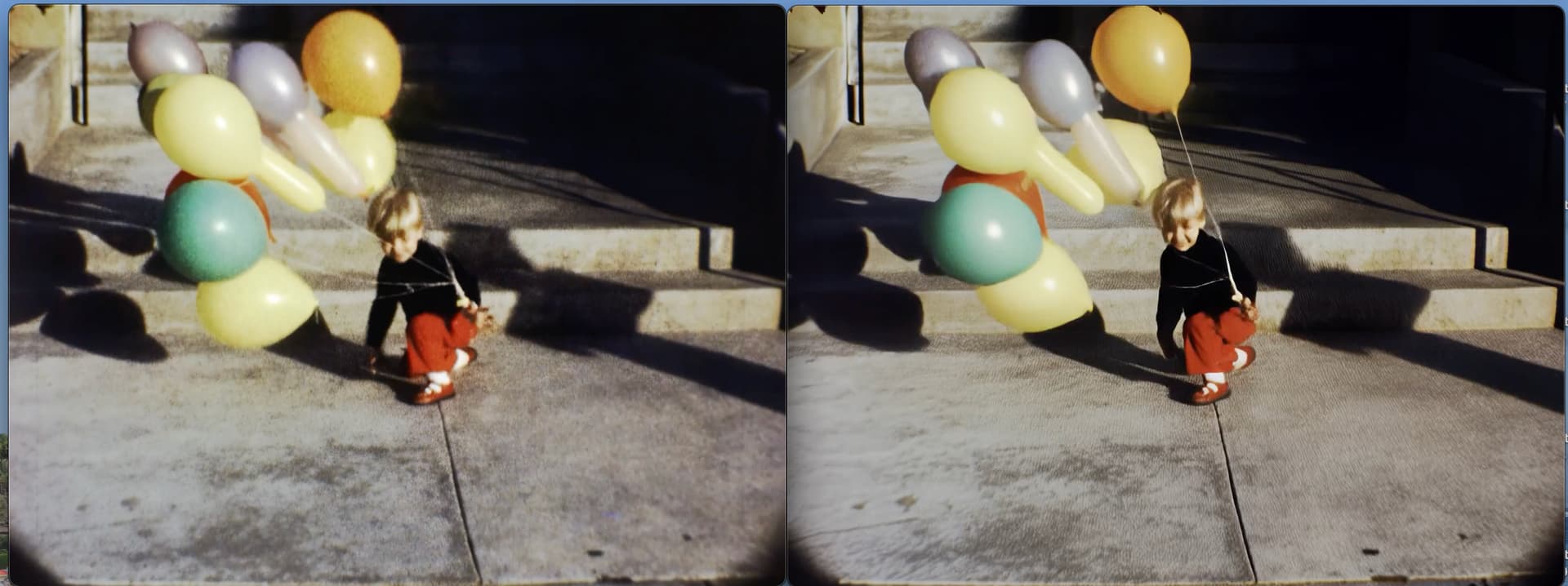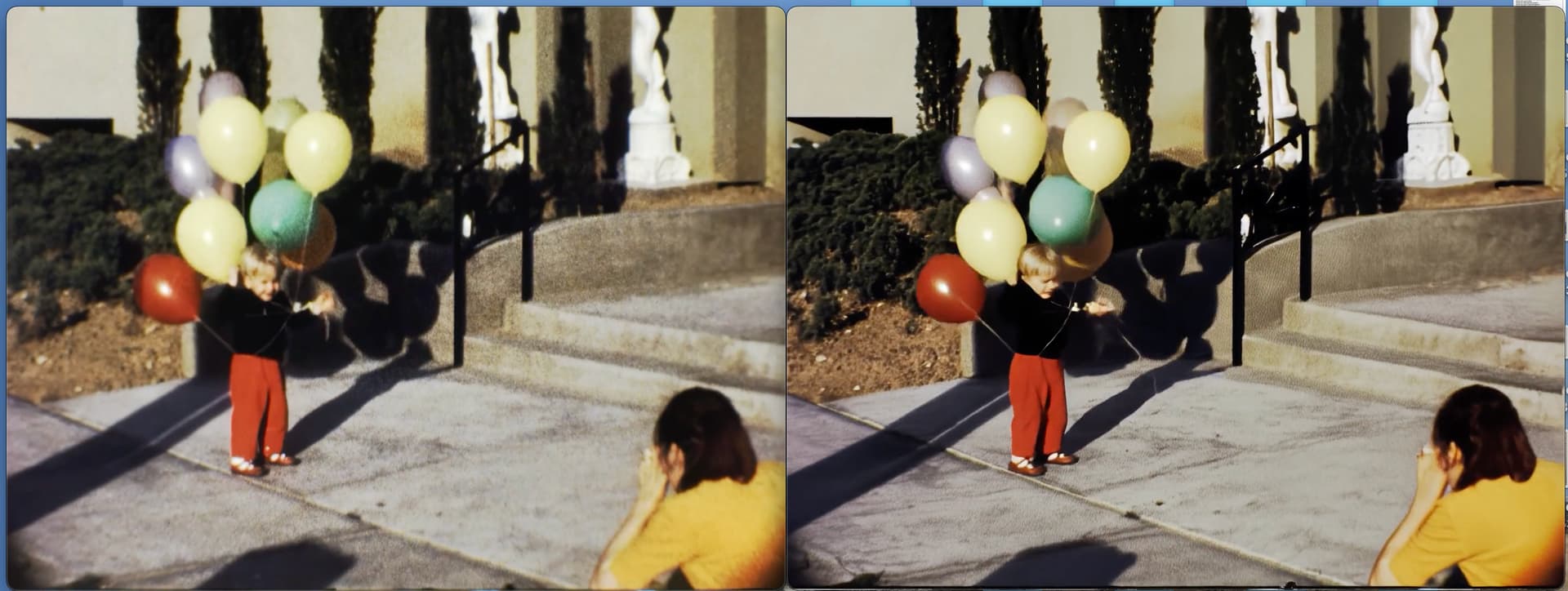 Super8 film enhanced by Proteus on the left and Starlight on the right