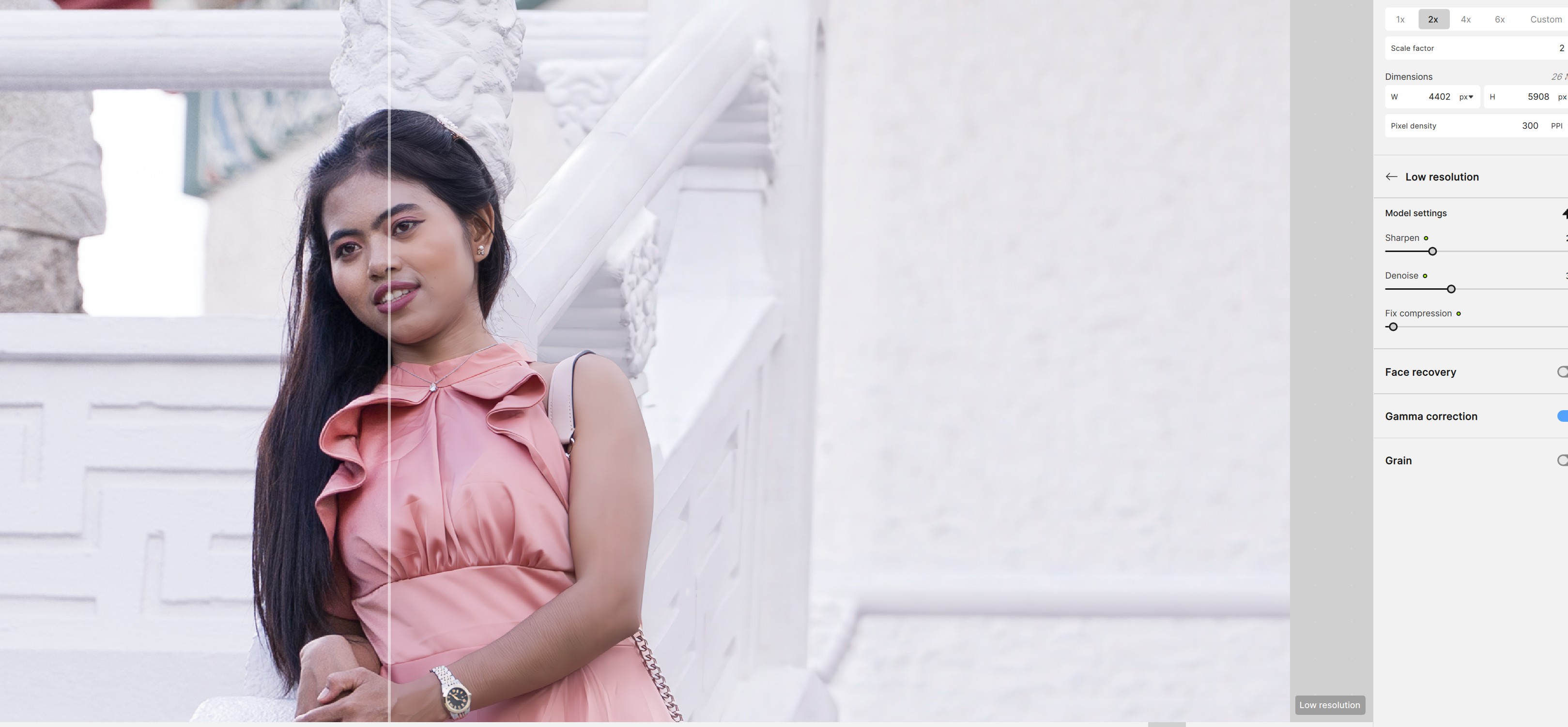 Yes I realise, Gigapixel also has Denoising and Sharpening but believe me they aren’t the same thing their not AI as in Topaz Photo only general purpose noise removal and sharpening to help remove artefacts that have been enhanced by the Upscaling or giving the image a boost in Sharpness if the Upscaling has softened the image.