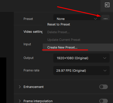 You can create a preset of the models with the slider settings you want to apply to your clips. Once you have models and the settings set, go to the top right corner and click the three dots next to the Preset menu.