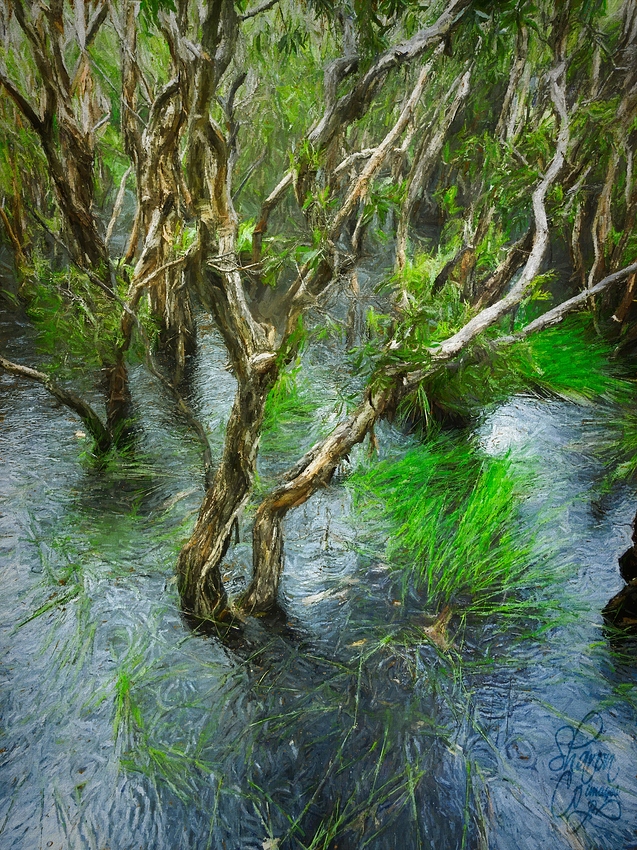 a more artist rendering of previously posted image of Rain in coastal wetlands near Mt Coolum, Queensland.