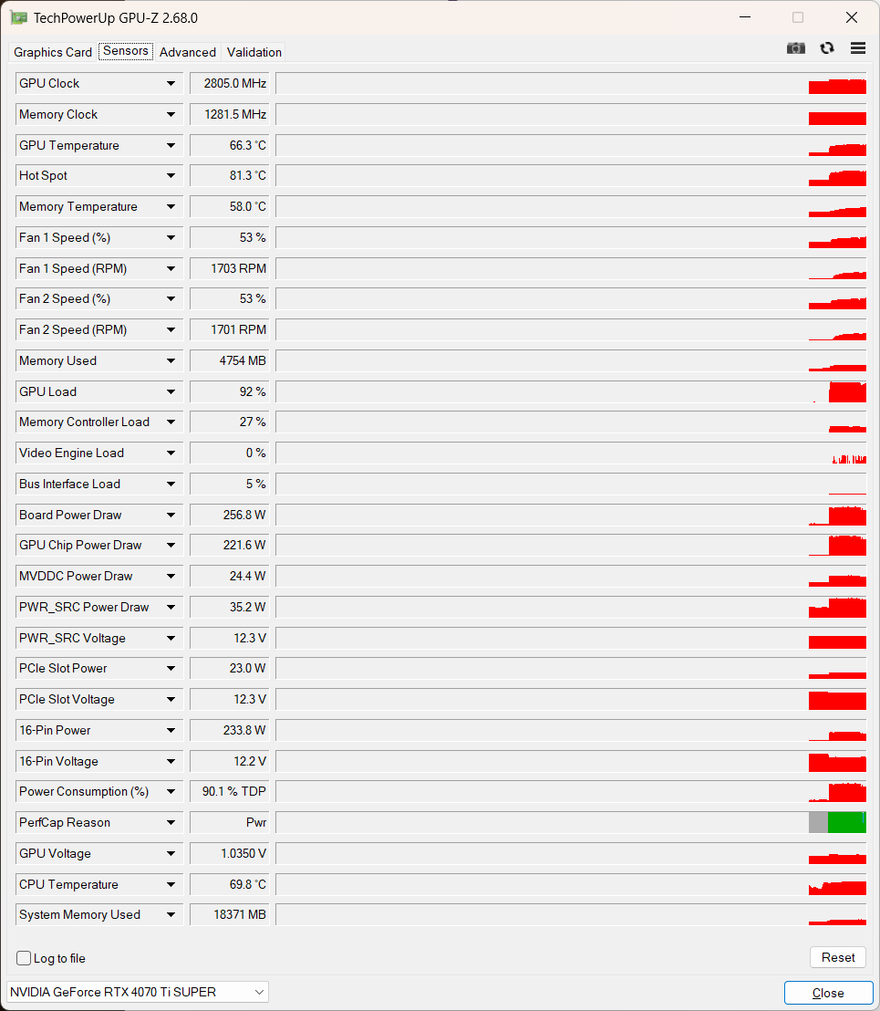 thanks for the information. Look at the Bus Interface Load, which is at 100% in your screenshot. The Bus Interface Load during the same test run on a RTX 4070 Ti SUPER is at 4-5% !!