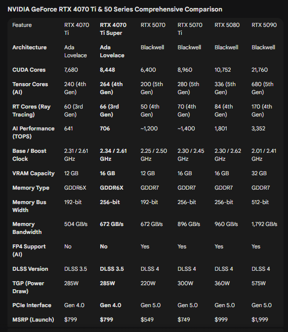 i anyone is reading this who has a different RTX 50 series GPU and can test with my presets (see download link to all files in one of my post) this would be very helpful. I would like to know which 50 series GPU is needed to match the RTX 4070 Ti SUPER’s performance and also how the lower end GPUs (RTX 5060 Ti) perform.