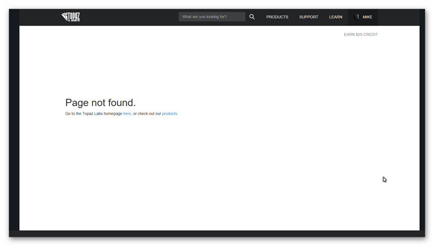 Two attachments. First one is a screenshot of the email with the mouse hovering over the “Visit Topic” link. Second one is the “Page Not Found”