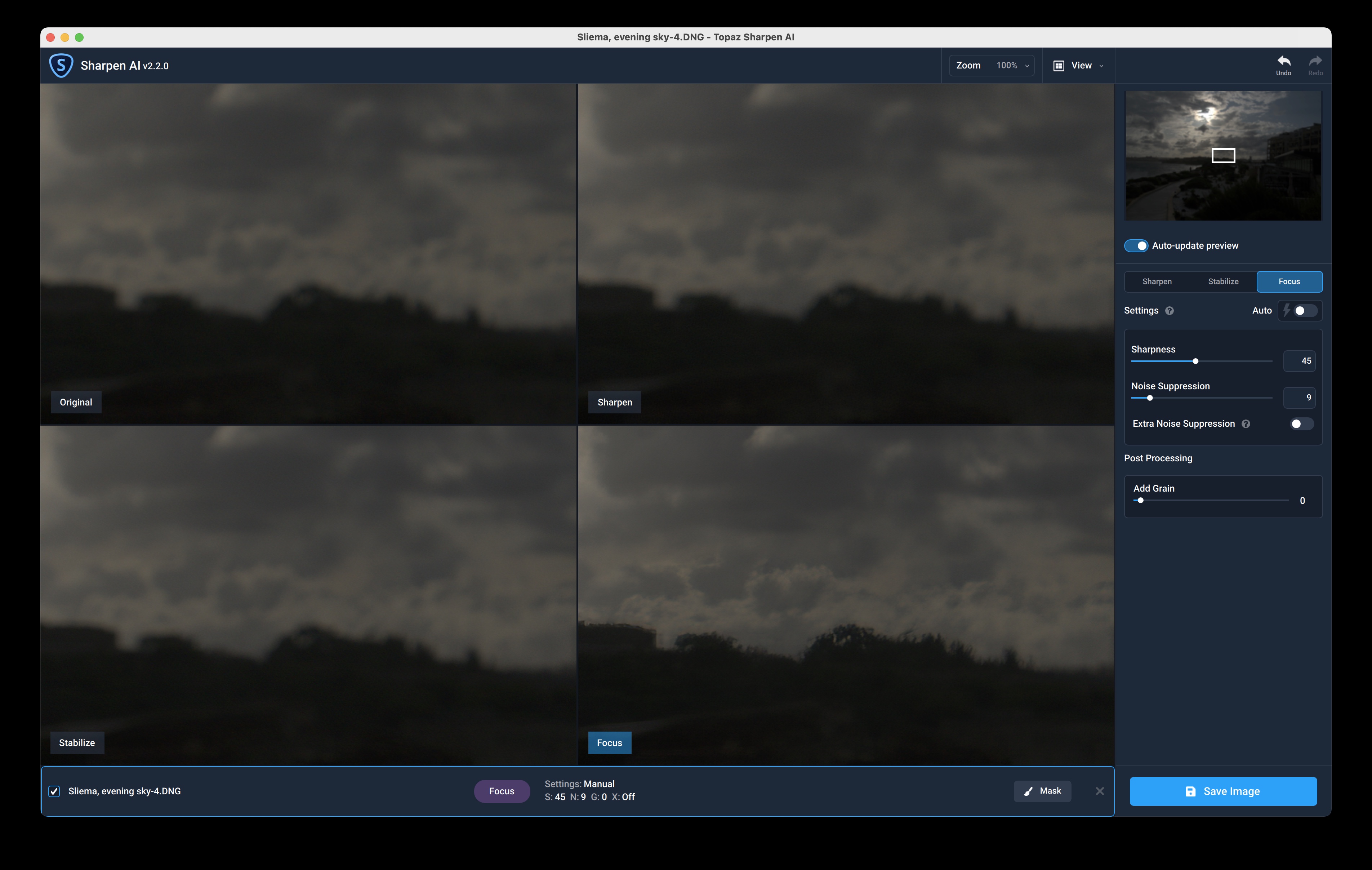 Application & Version: Topaz Sharpen AI Version 2.2.1