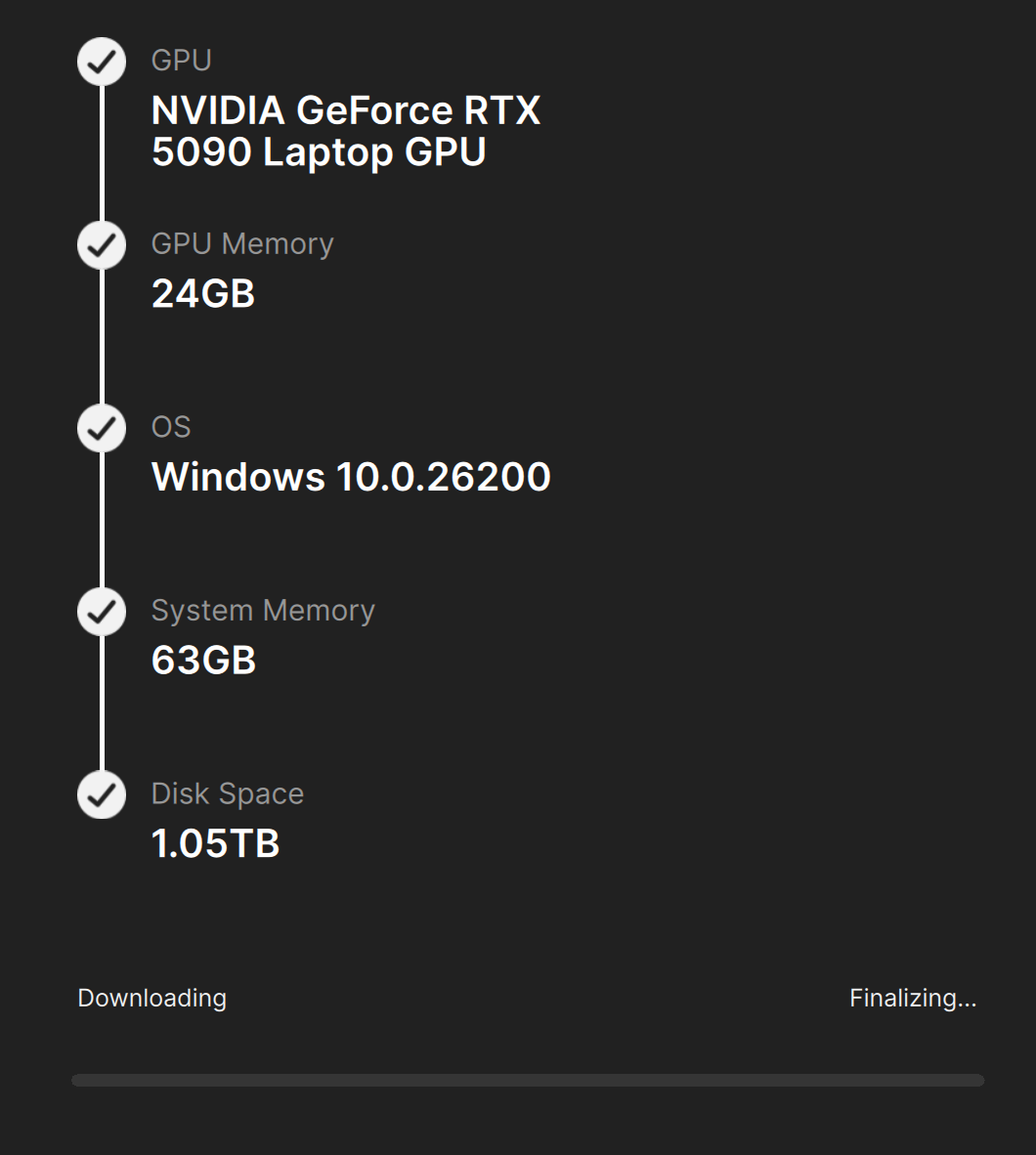 Starlight Mini is not downloading on my laptop. The download stays frozen as shown in the screenshot below. The screenshot below also shows my laptop profile. Attached are my log files.