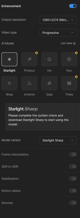 I Have: Apple M4 Pro - 64 GB RAM - macOS 26.2 >>> TOPAZ says: _Please complete the system check and download Starlight Sharp to start using the model. hmmm ? Nowhere is there a download button to complete the Starlight Sharp AI model. I saw in a video that there is one
