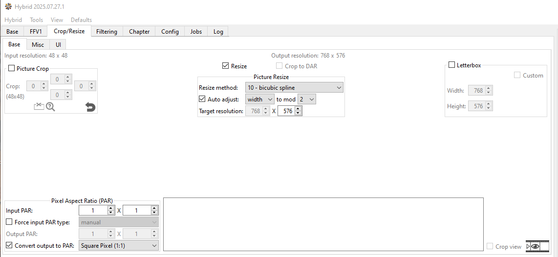 - Crop - Letterbox/Pillarbox