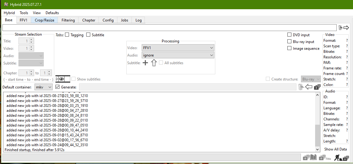 My lossless exports from the old DVDs is my source and it works fast enough simply by popping in the DVDs and running a batch. I built a machine that houses 6 Blu-ray/DVD drives. I can’t get significant amount of video data from a 4.7GB DVD with approx. 2 hour videos, so these exported lossless .mp4 work the best for now.