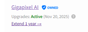 Because you own an active upgrade license to Gigapixel, you get access to the new TopazGigapixel, new pro-only models, and unlimited cloud rendering for images at no extra cost. On Sept 16: With an active upgrade license, you’ll get access to: Topaz Gigapixel, including the upcoming Wonder AI model normally for Pro only. Unlimited cloud rendering for images (non-batch). Grandfathered auto-renewal price as long as your plan is active.