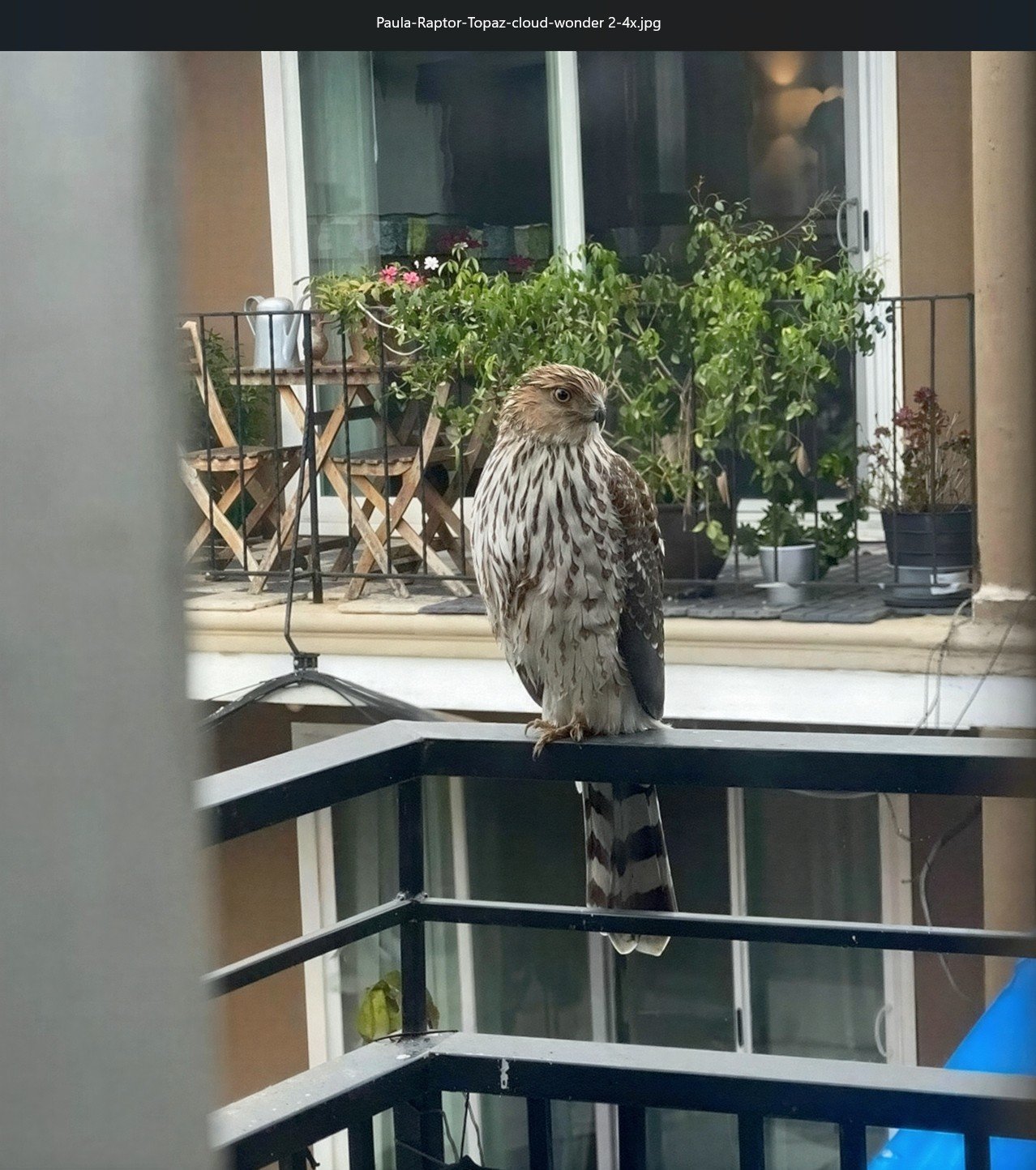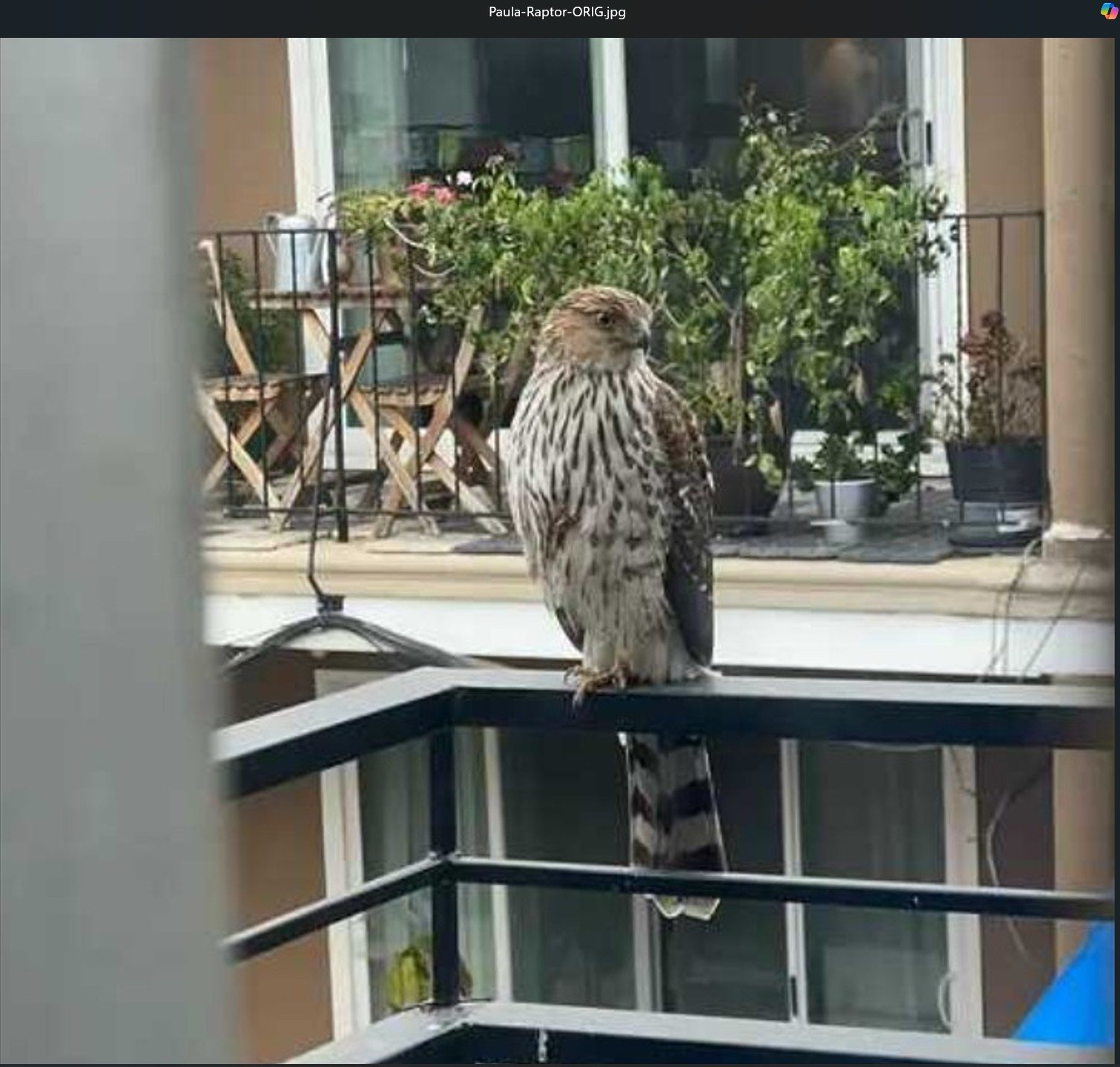 Ran a low res phone cam pic of a raptor published on local NextDoor today. The person saw the bird on their balcony railing and shot a quick grab shot of it: