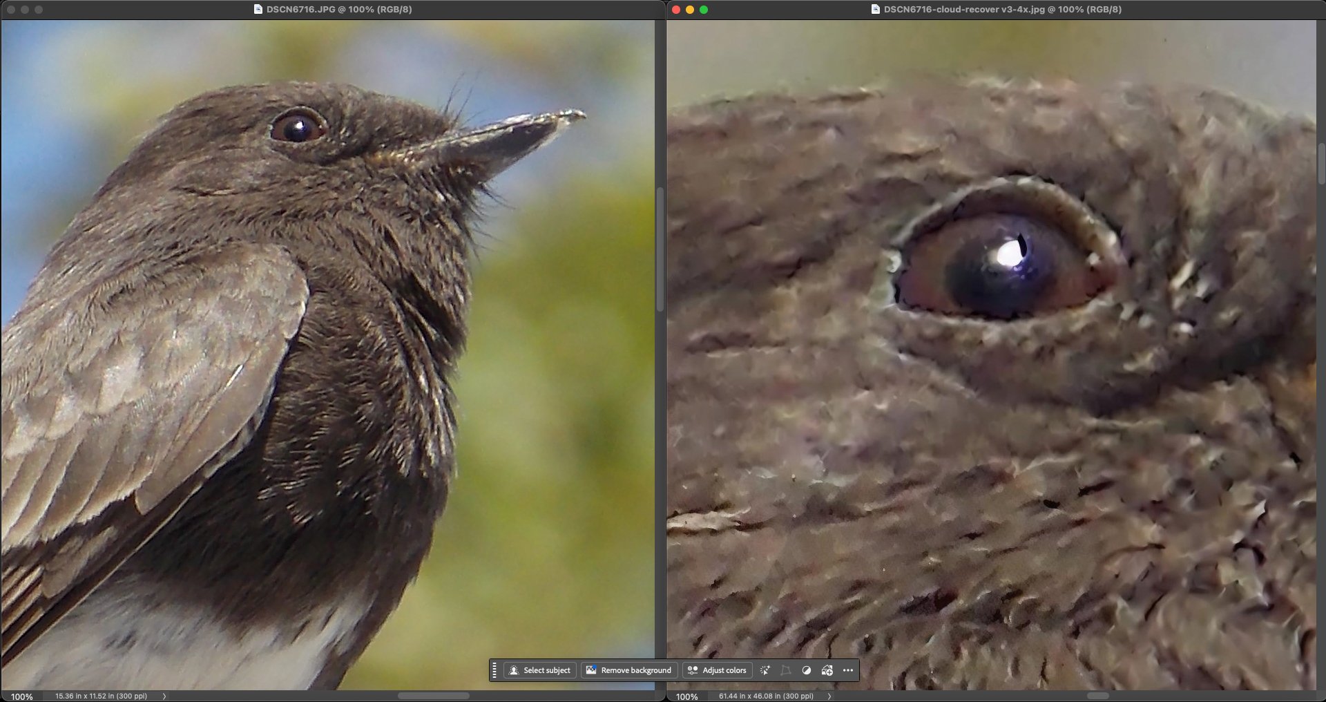 I think Wonder 2 (Cloud - 4x) did a nice job recovering details in the bird (given what the shot is and how it started out!). It’s not as soft as what I thought of the prior Wonder as producing. Granted the shooter needs to crop and straighten and perhaps add a depth/lens blur to soften the background. But it’s considerably improved from the original above: