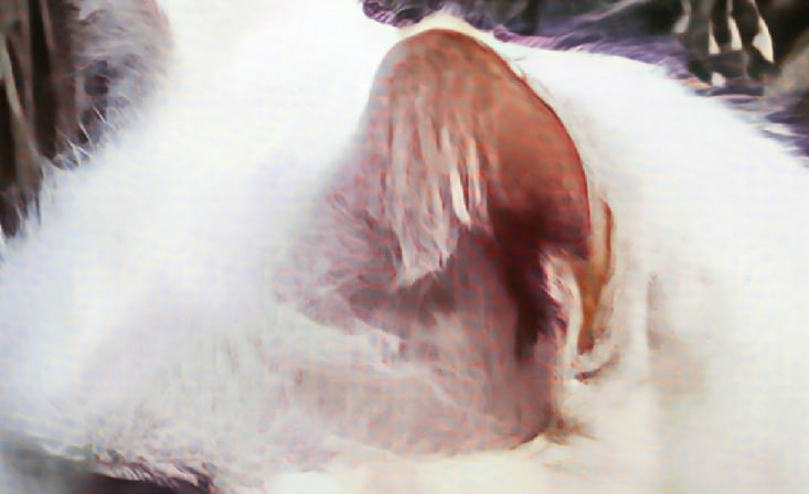Yikes… am I the only one who sees massive horizontal banding in the white fur as well as in the pinkish inner ear?