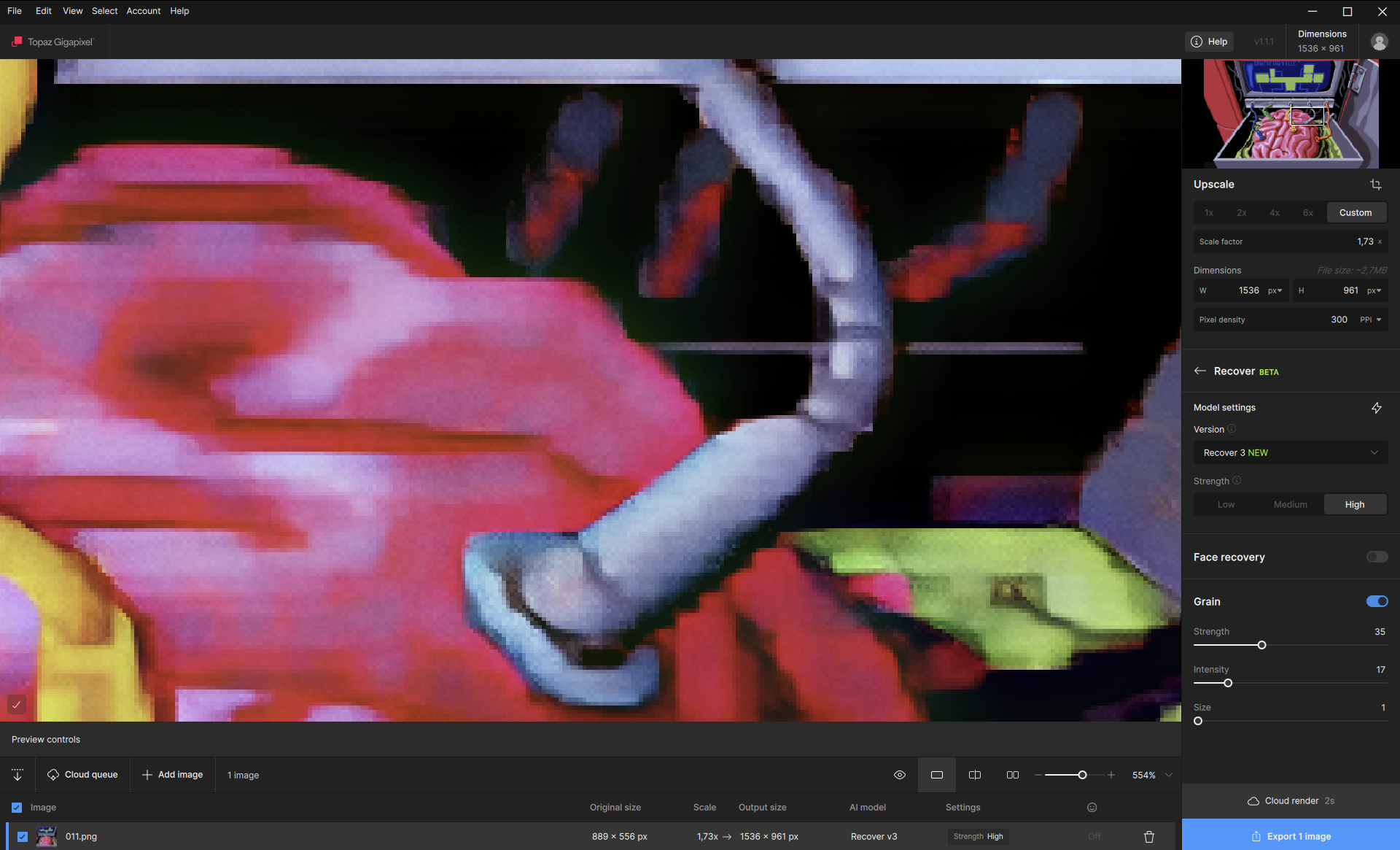 While Recover V2 is currently the only model that features a built-in downscaling option, any image can be downscaled with any model using decimal values less than 1 in the scale factor parameter.