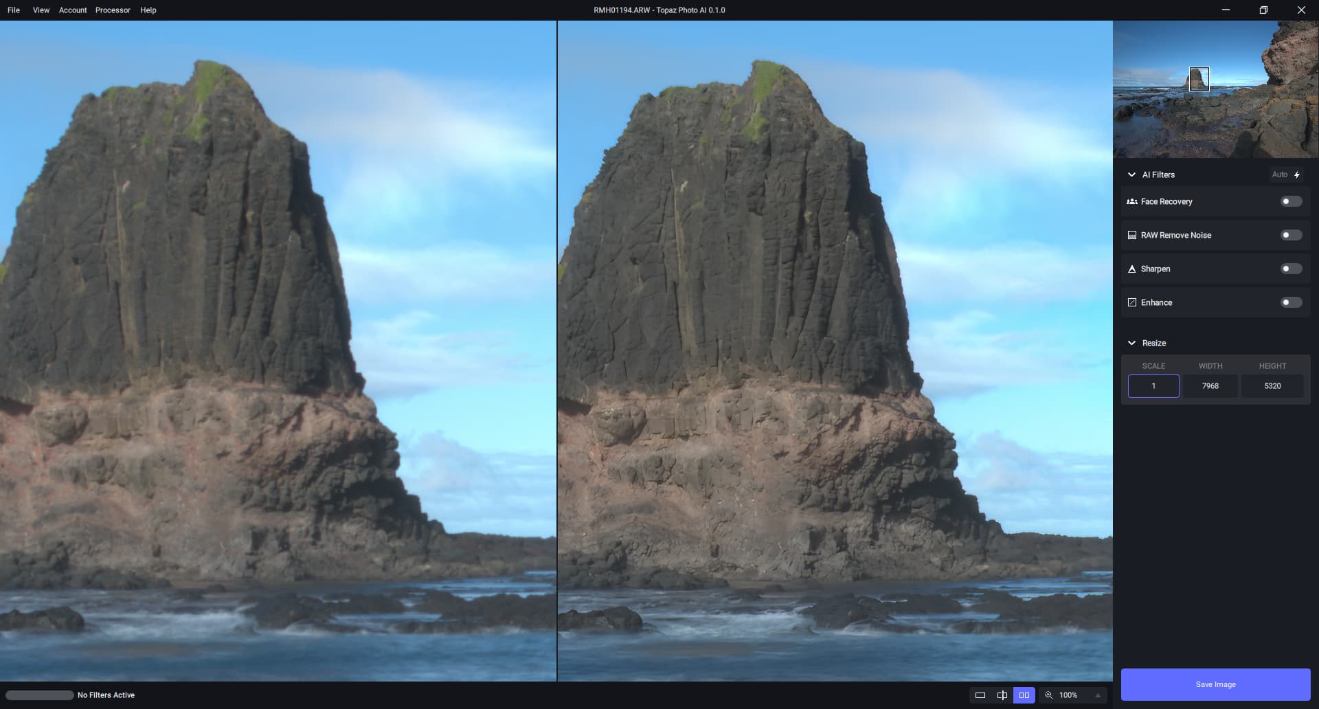 When I turn everything off (no filters active), the changes to the image stay. Sharpen with zero strength also has an effect. And I didn’t like what RAW Remove Noise did to this one. Windows 11, Sony ARW file.