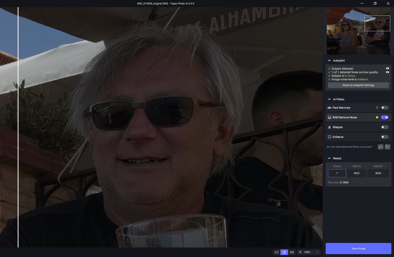 Also, the sharpen algorithm seems to only ‘see’ areas of the picture that are in focus and misses areas that could you some sharpening. I do like the app so hope all the issues can be resolved prior to final release as currently, I am spending more time processing as I often have to send a photo to Denoise and to Sharpen.