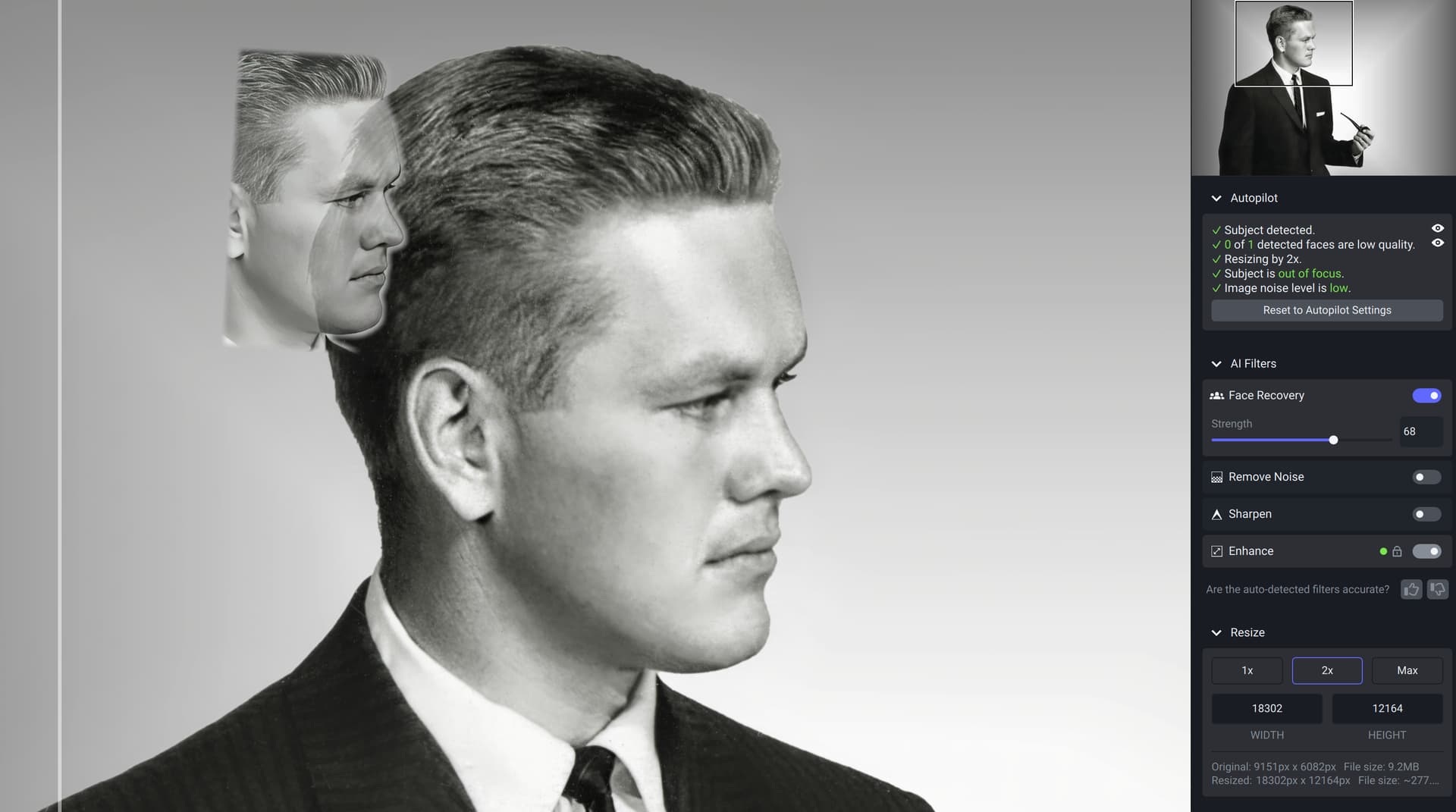 Where I believe Topaz can bring its know-how in AI is something that Skylum did with Enhance AI slider and Sky AI slider, as well as face/eye cleanup - all areas where AI seems to be doing a great job. Photoshop’s face rebuild ML model is creating really great results for scanned images if applied in moderation. Would be great to come home from vacation or photoshoot load a series of presets for different batches of photos and then apply all-in-one enhancement pipeline. Unfortunately, Studio 2.0 didn’t support batch processing so I had to stick to Studio v1 but it was my favourite all-in-one tool for a long time. Pair your old Studio v1 code with Photo AI and it will be a killer tool.