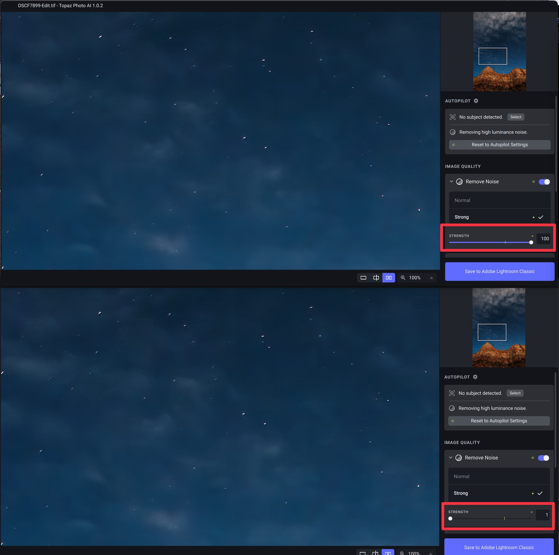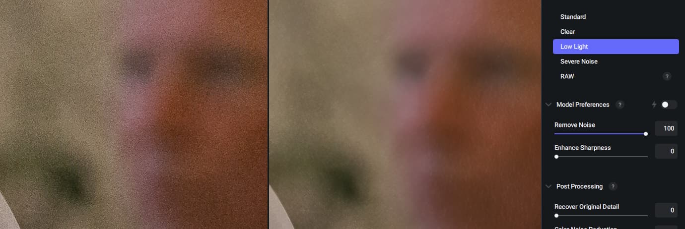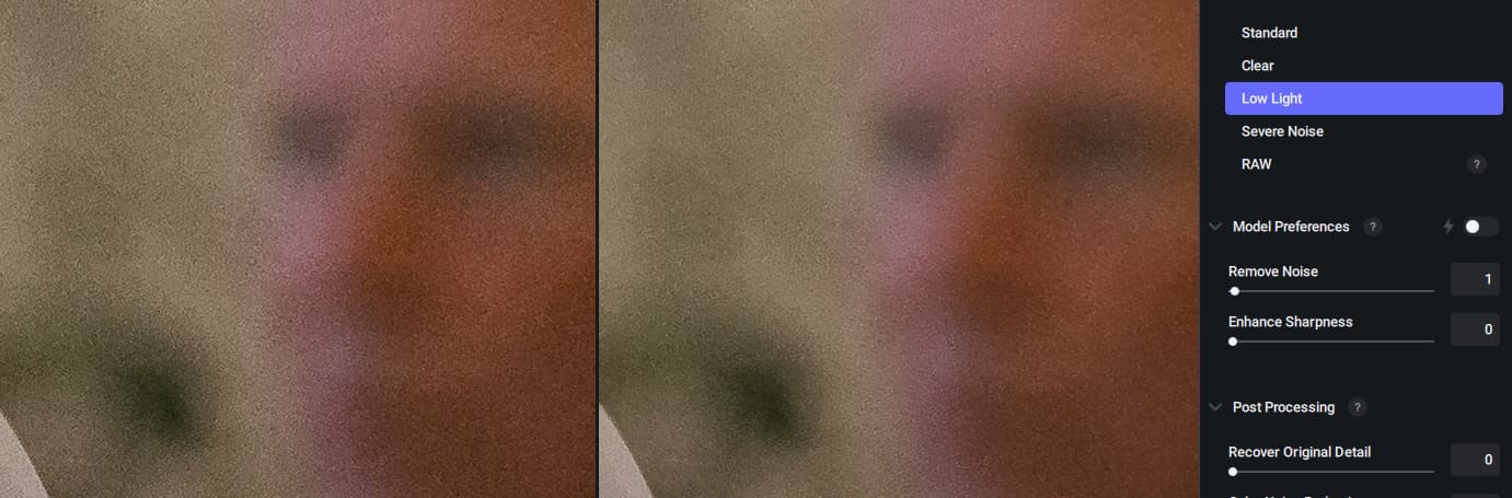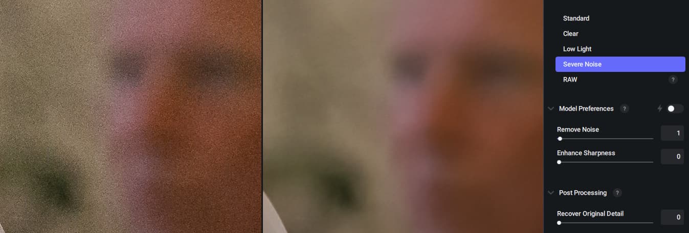 Well at Photo AI I cannot select the model (which the Autopilot set to “medium luminance noise” for my test picture). I only could select between “normal” (which is active) and “strong” (which I believe to get even more noise reduction, but I want to have less).
