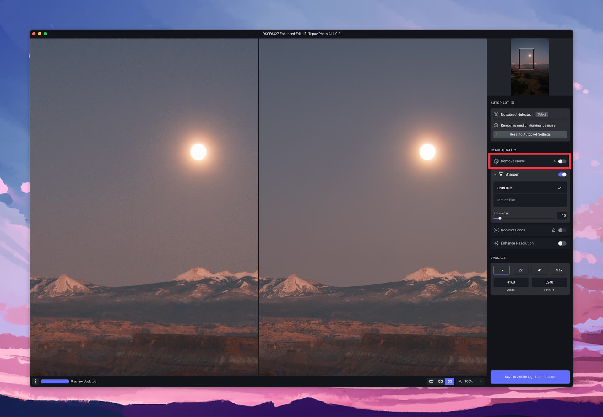 This is the first Topaz product I’ve owned, and I’m enjoying it so far. I’ve noticed however that recover faces always defaults to 100% and that’s almost never what I want. Other settings are similarly higher than I’d like with autopilot. I would love love love to be able to set hard limits on those settings. E.g., go ahead a recover the faces, but don’t exceed 30%.