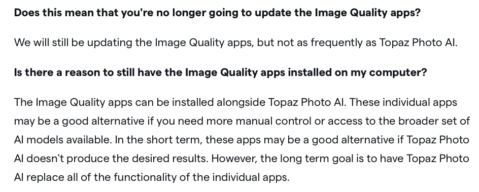 Don, I can’t prove it right this second but I discussed this with one of the devs early on while testing and he indicated the same thing (ie, Photo AI is the new direction).