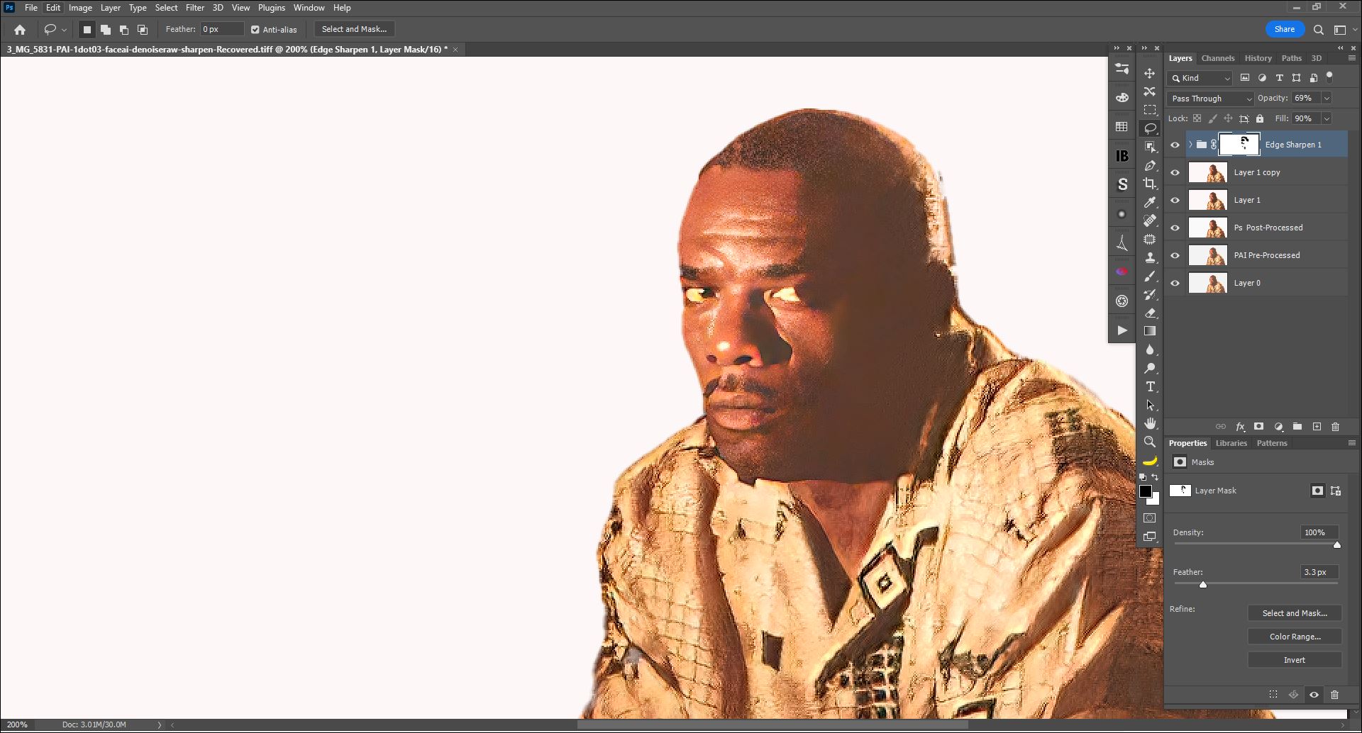 Denoising - removed significant color noise. I’ll have to take pre-processed image into Ps to try to refine the sharpening & contrast on him. Will do later to see how the PAI-processed image behaves in Ps.