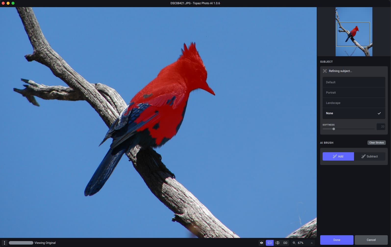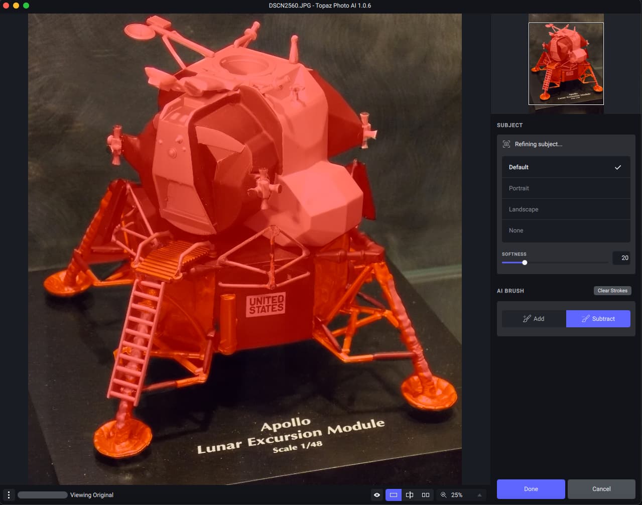 This week we have an update that continues improving memory usage and performance improvements and bug fixes, general quality of life stuff like that… Oh yeah, also AI Brush, a feature we’ve been working on for a while that will allow you to refine your subject mask with much more precision! We think this is much better than the “dumb” brushing in the older IQ apps, even with their edge detection modes. It still has a lot to improve upon though, and you should expect to see further updates to it - please give us any feedback you have over your experience using AI Brush to help make it the best it can be!