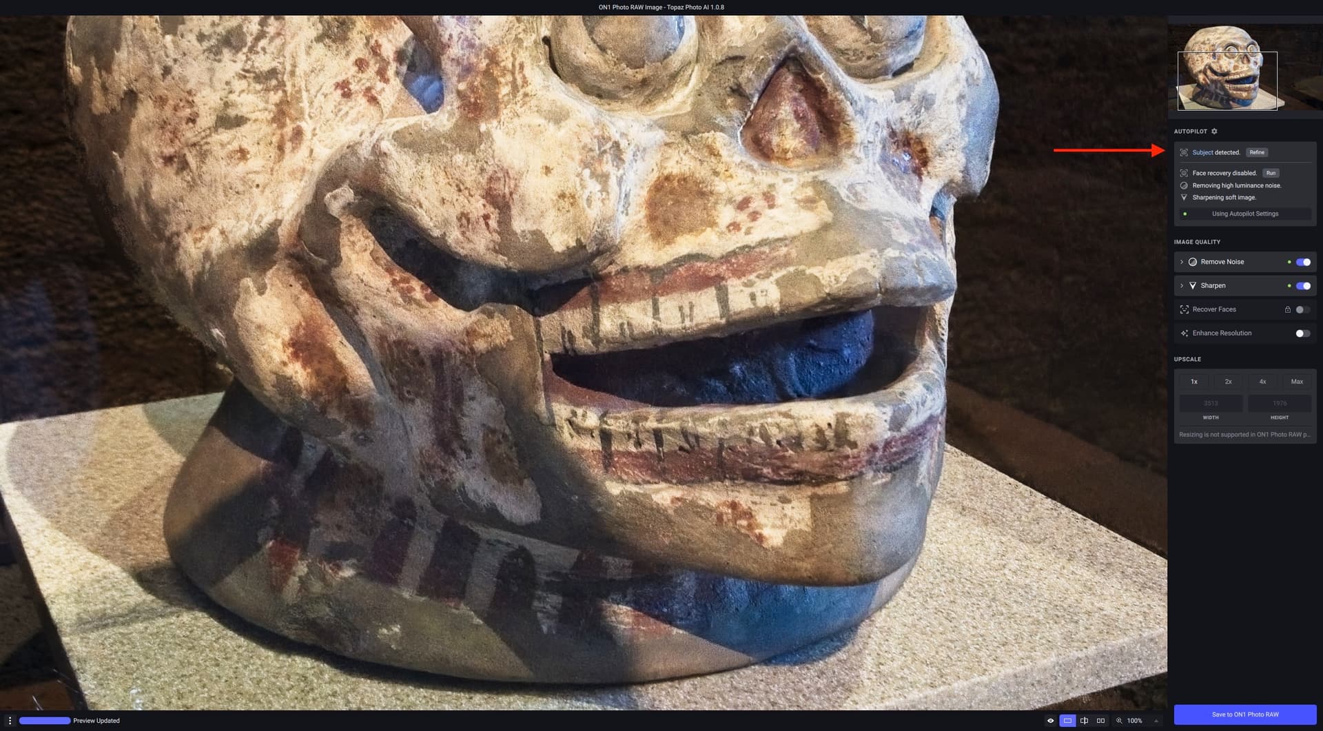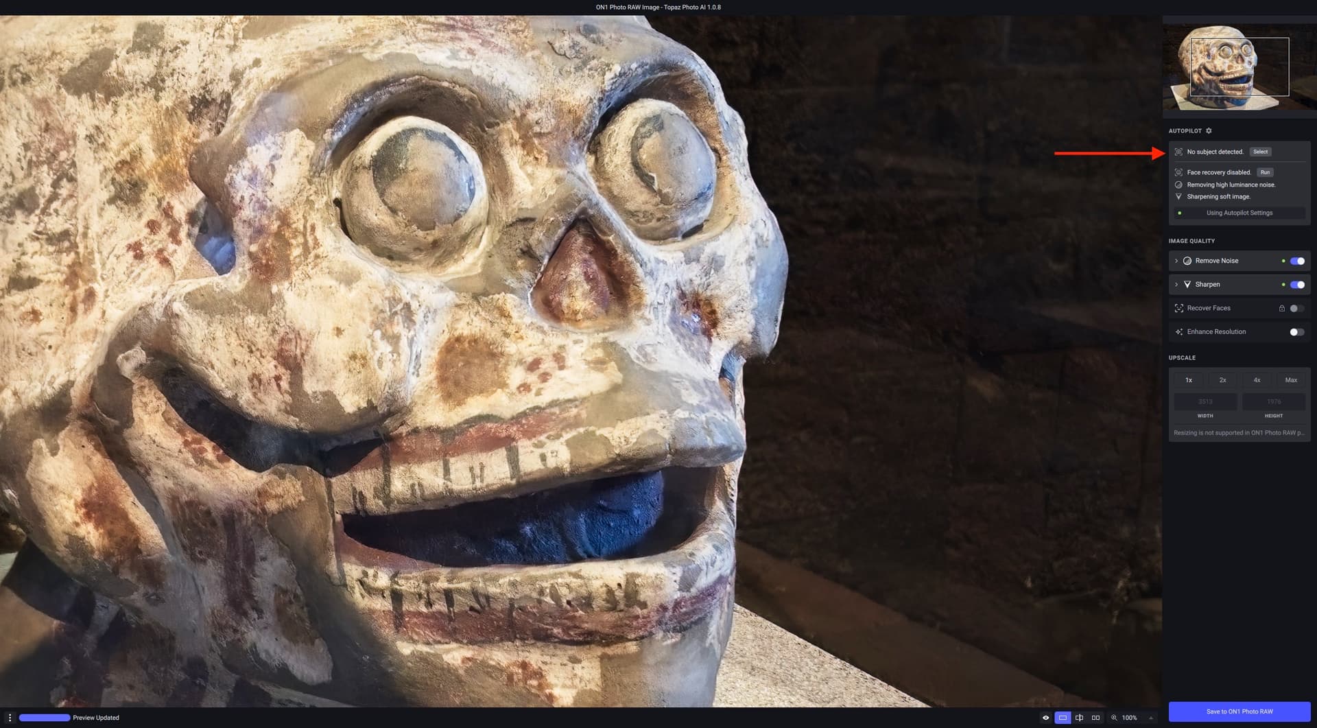 In this case I had in the .7 session added the sharpen feature, as Photo AI didn’t do that by itself.