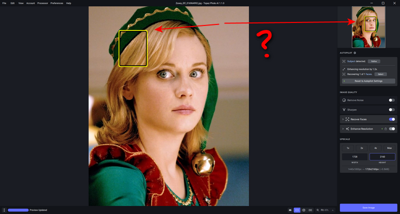 The positive part is that this upsizing and noise reduction is an image saver, and that is fantastic.