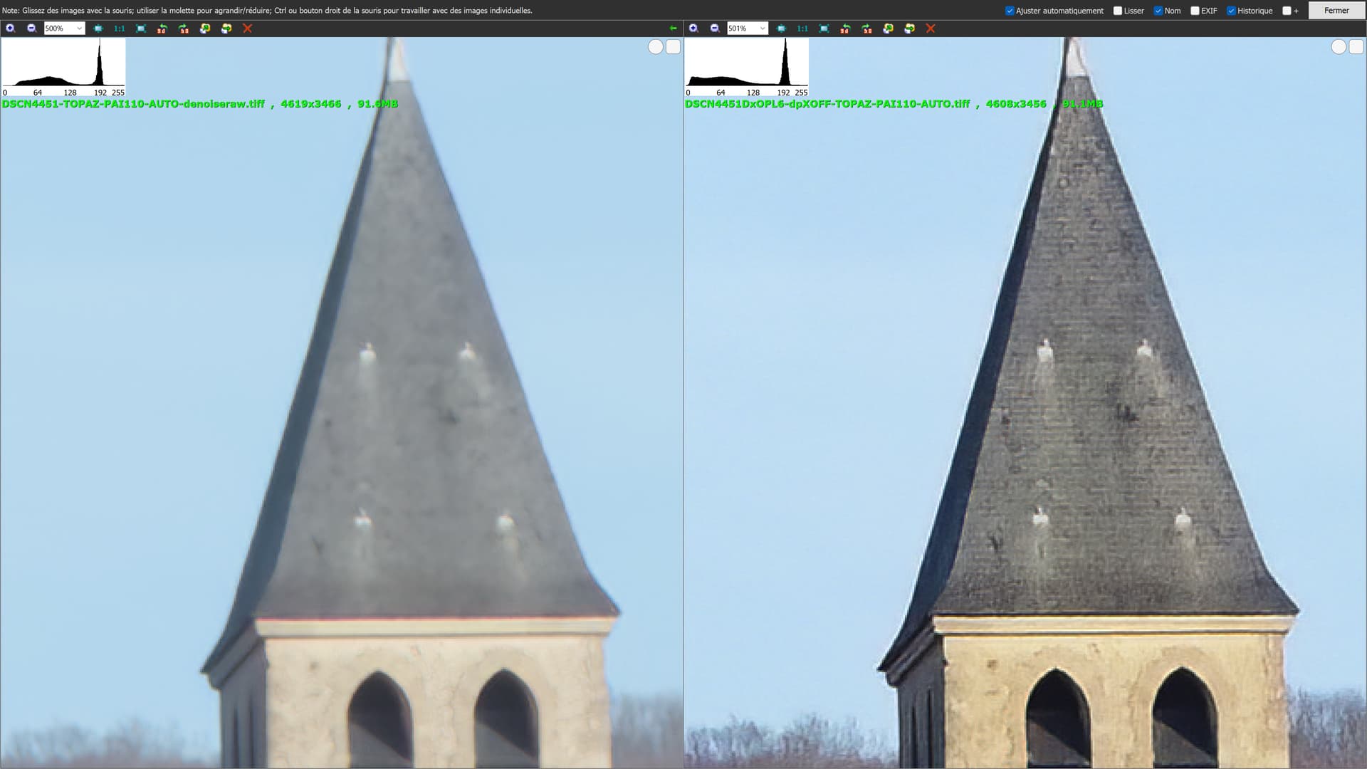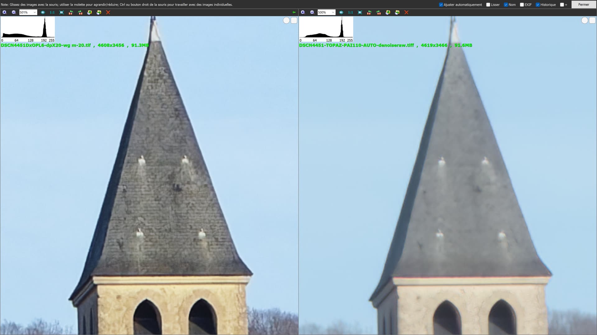 and compare TOPAZ RAW to TOPAZ on TIF without previous denoise where there is much more details