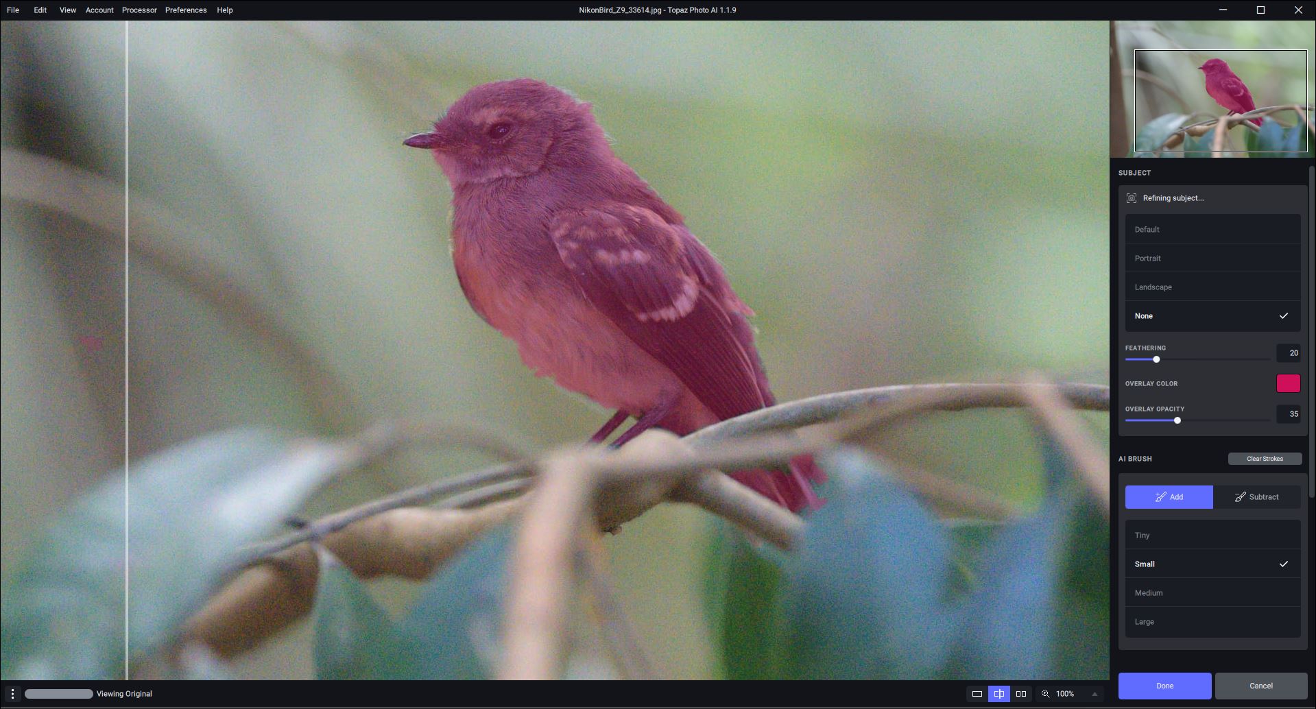 I see what you’re saying about losing detail (at the very least, the feathers are softer than they could be - the eye too; which is critical for wildlife photography).