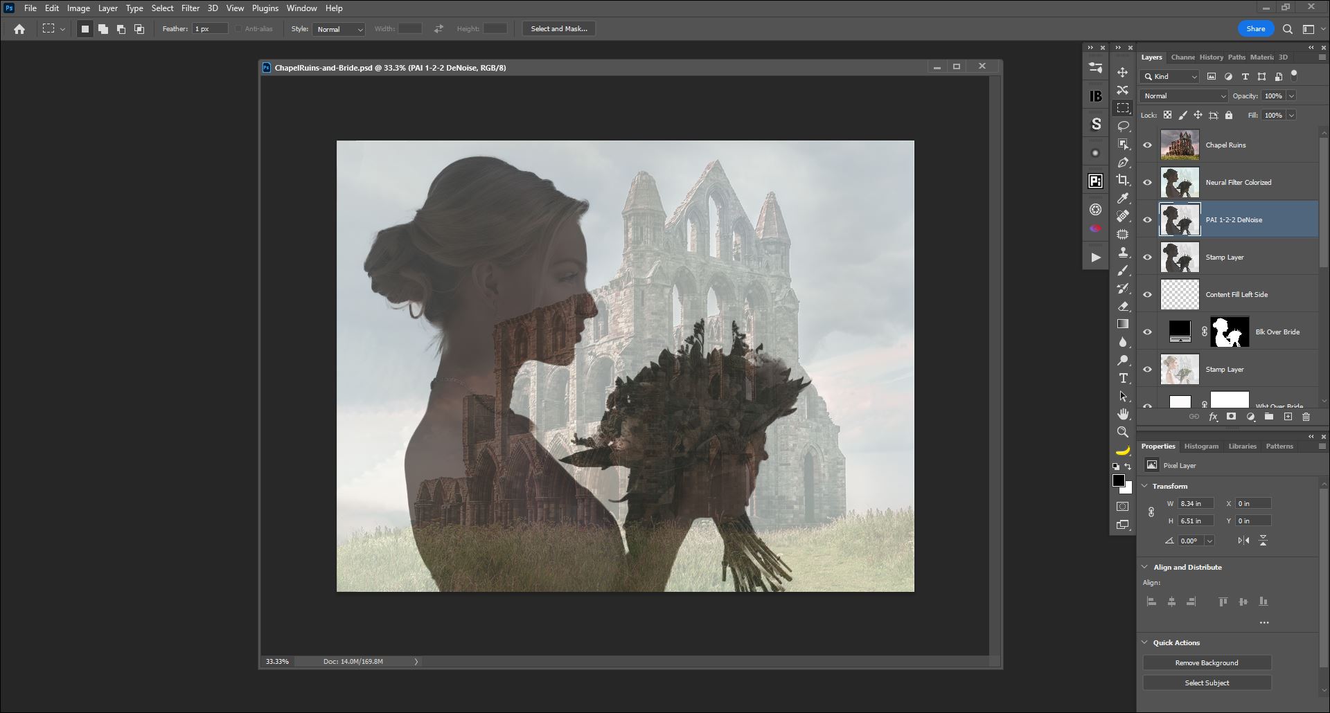 Working with a faux double exposure composite I constructed in Ps 2023. Original source images .jpgs. I used the PAI 1.2.2 plugin about 2/3 through the composite (once the 2 images were together and several adjustment layer effects were added to achieve a more double exposure look).