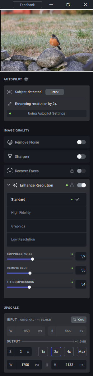 Because for now it’s a great tool to enhance family pictures, but using it in a professional context dealing with video frames and not photos is a test of patience.