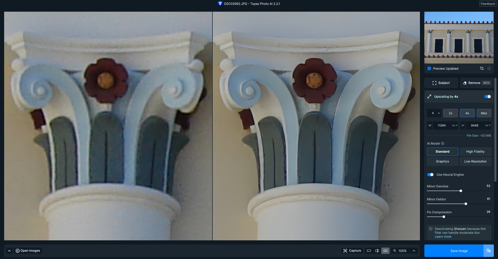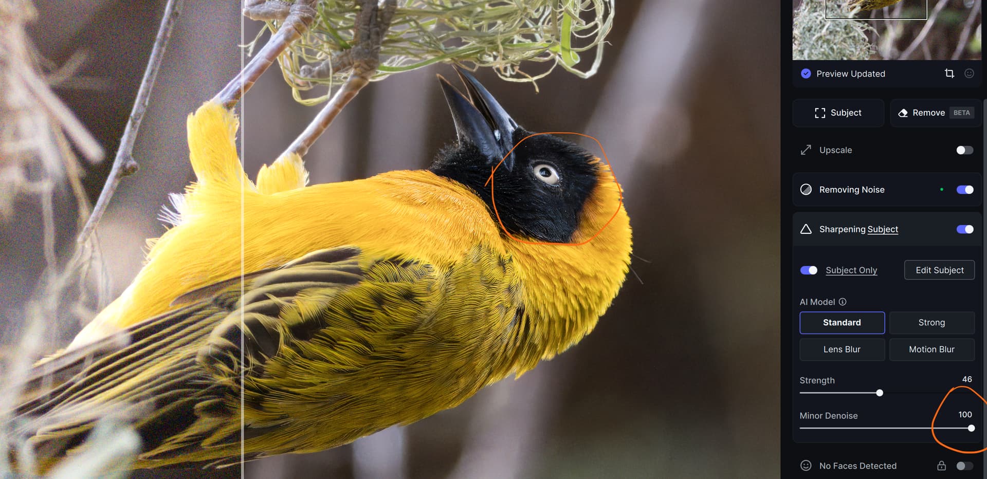 In this case, Autopilot did not select Sharpen. However when I manually enabled Sharpen, it sets minor noise was at 100.