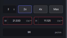 How to set the size in centimeters and resolution in pix/in?