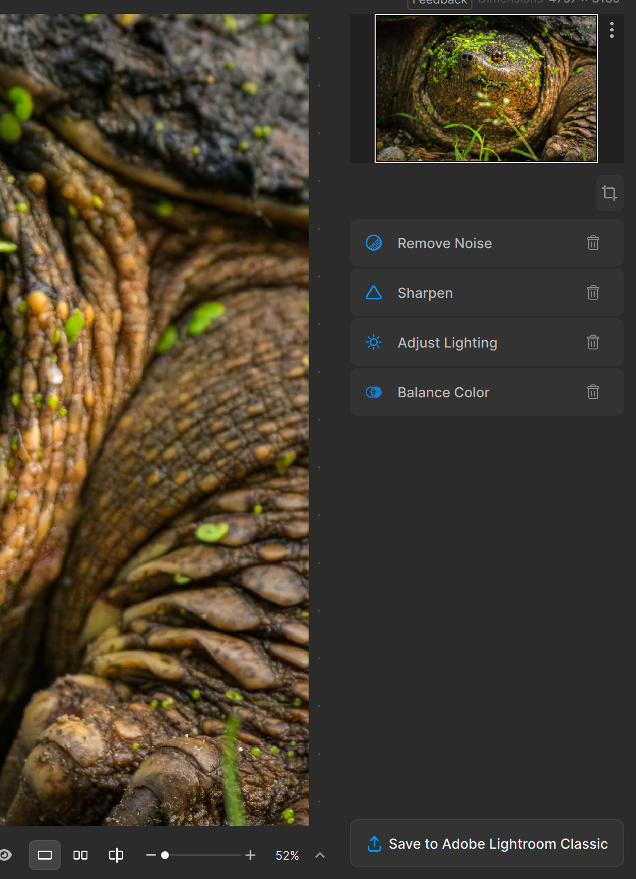 Also, give us the option to hide enhancements we’ll never use. Most of my students use Photo AI to denoise, sharpen, and occasionally upscale. That’s it. We don’t need to “enhance” since we use Lightroom (or another editing app with Topaz as a plugin).