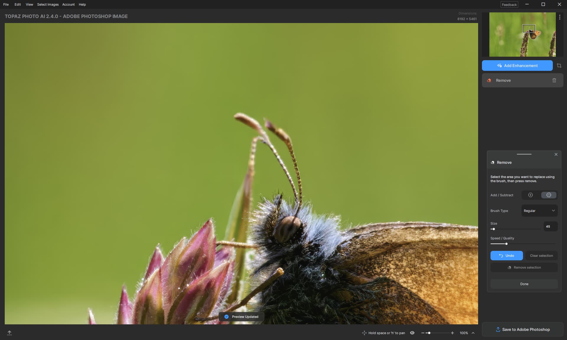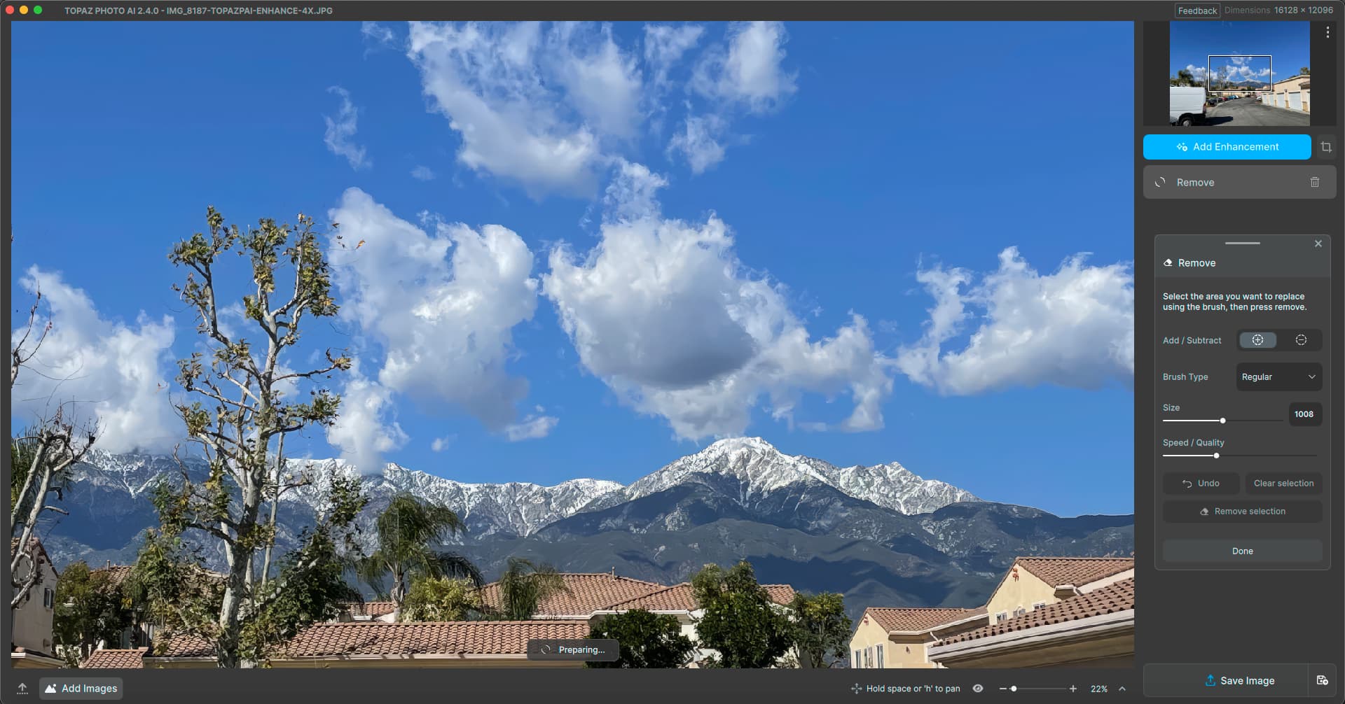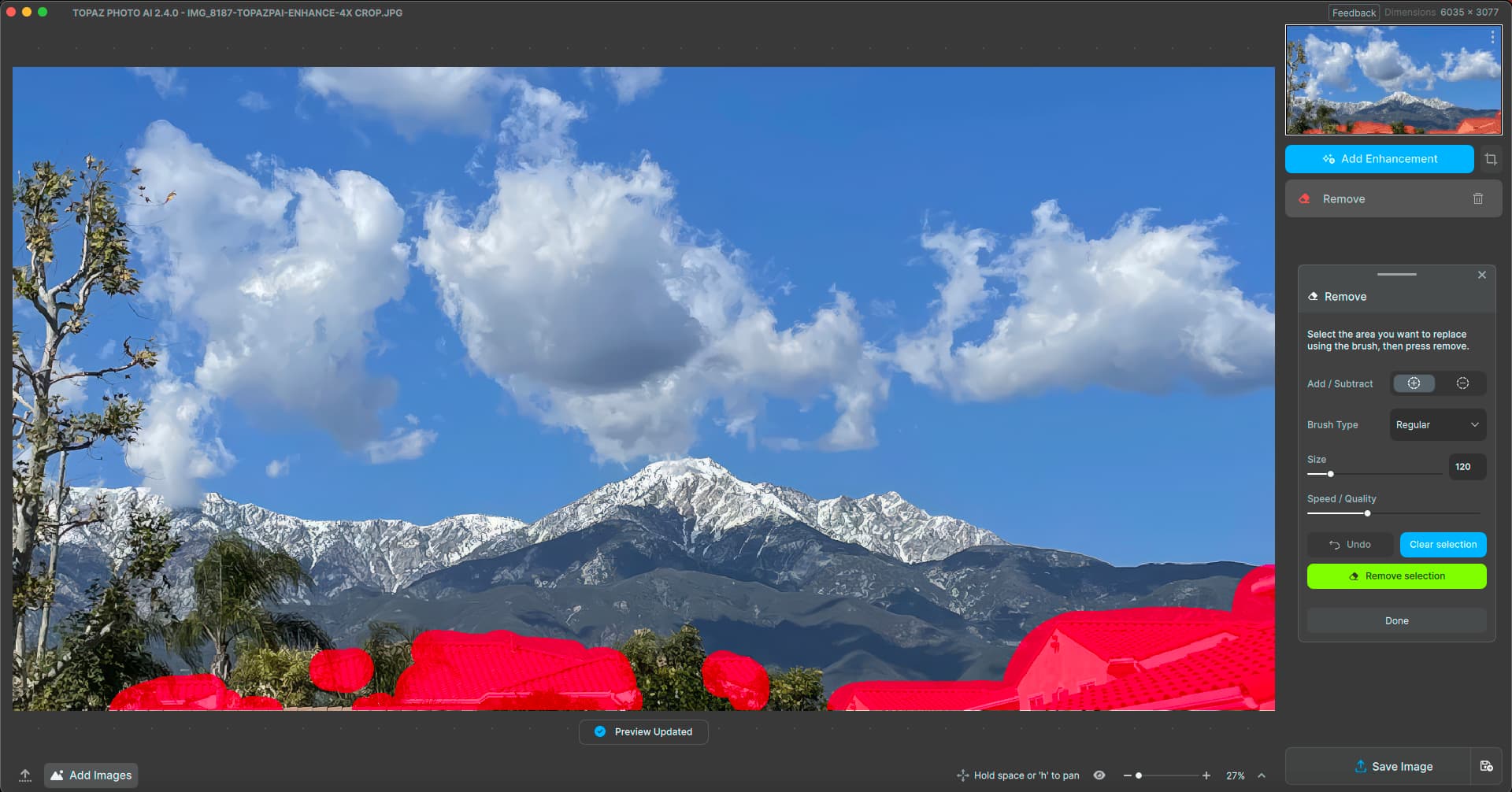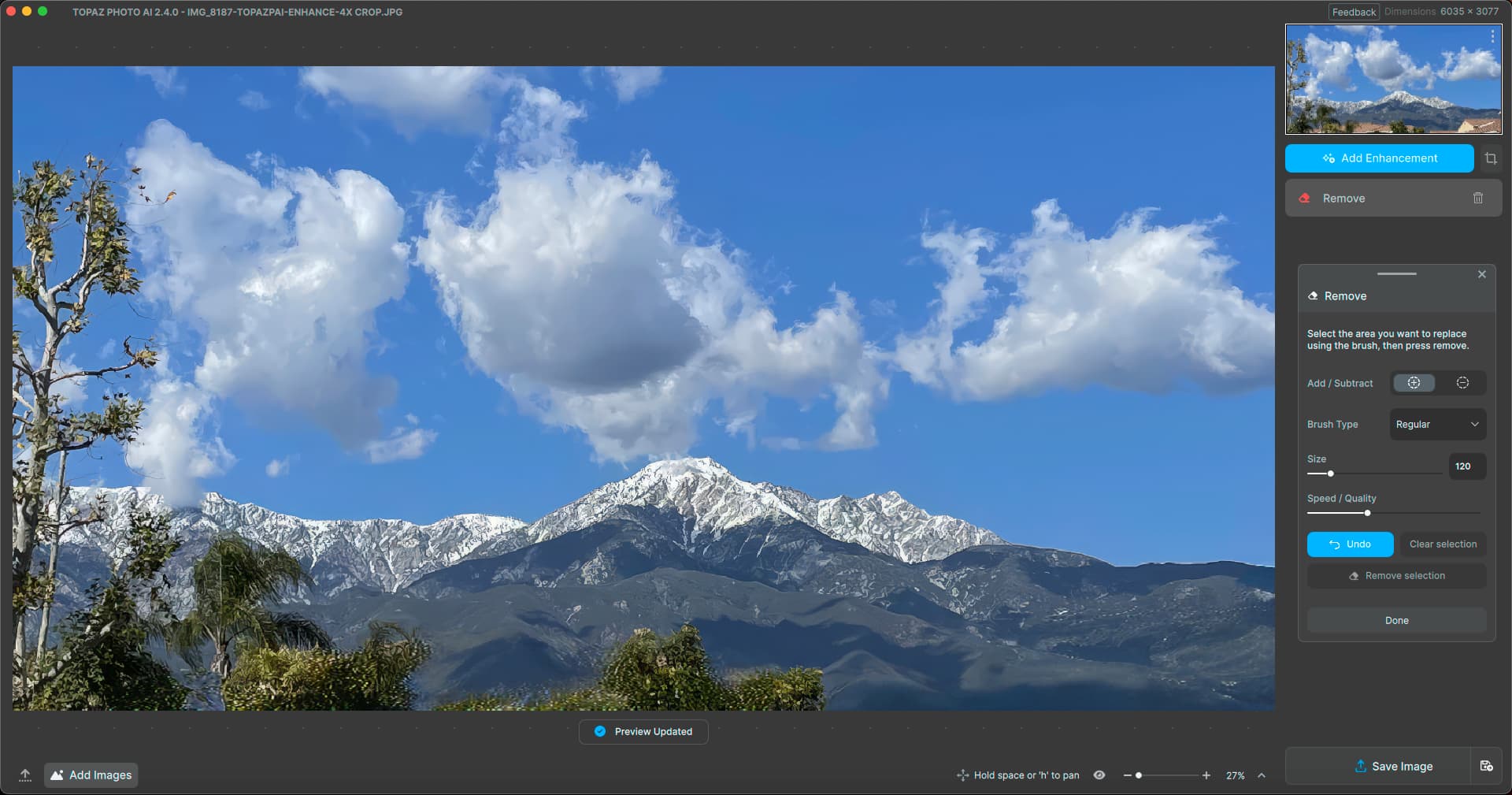 Now to do some Removing. But where did my crop go?? Remove is choking on the full 4X image (M2 Mac Mini, 500/16):
