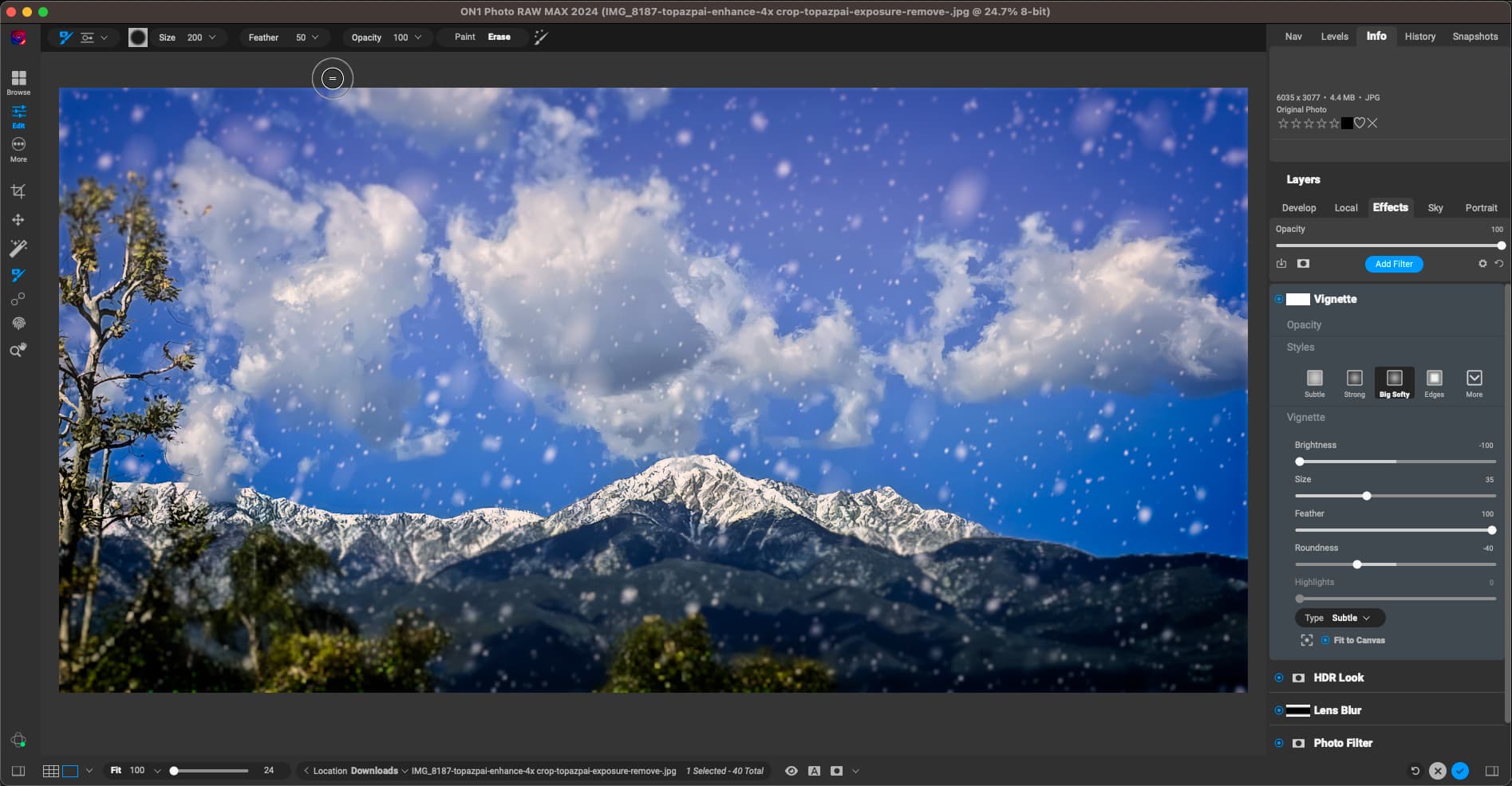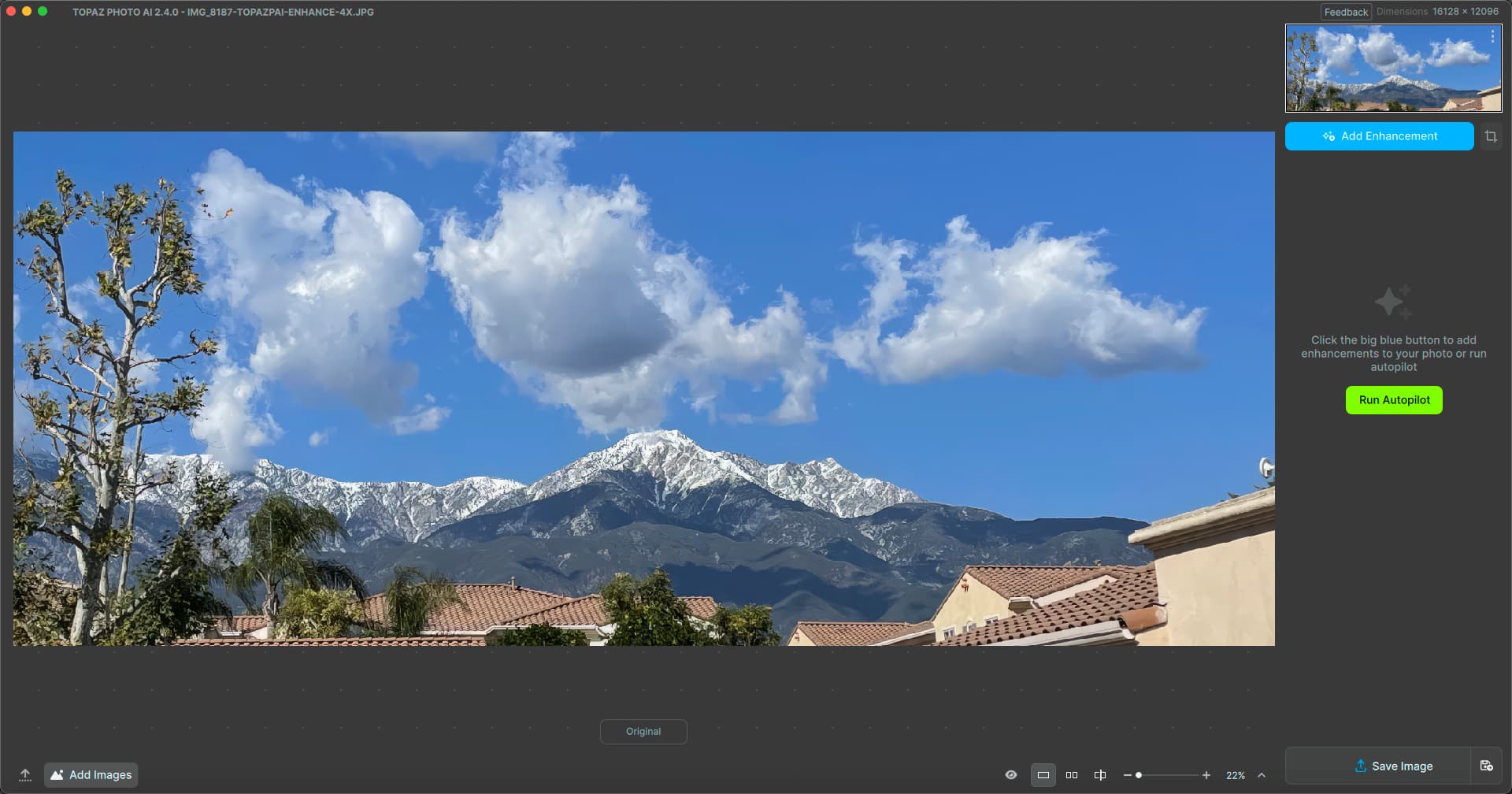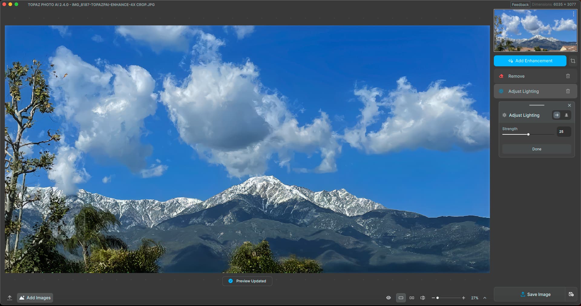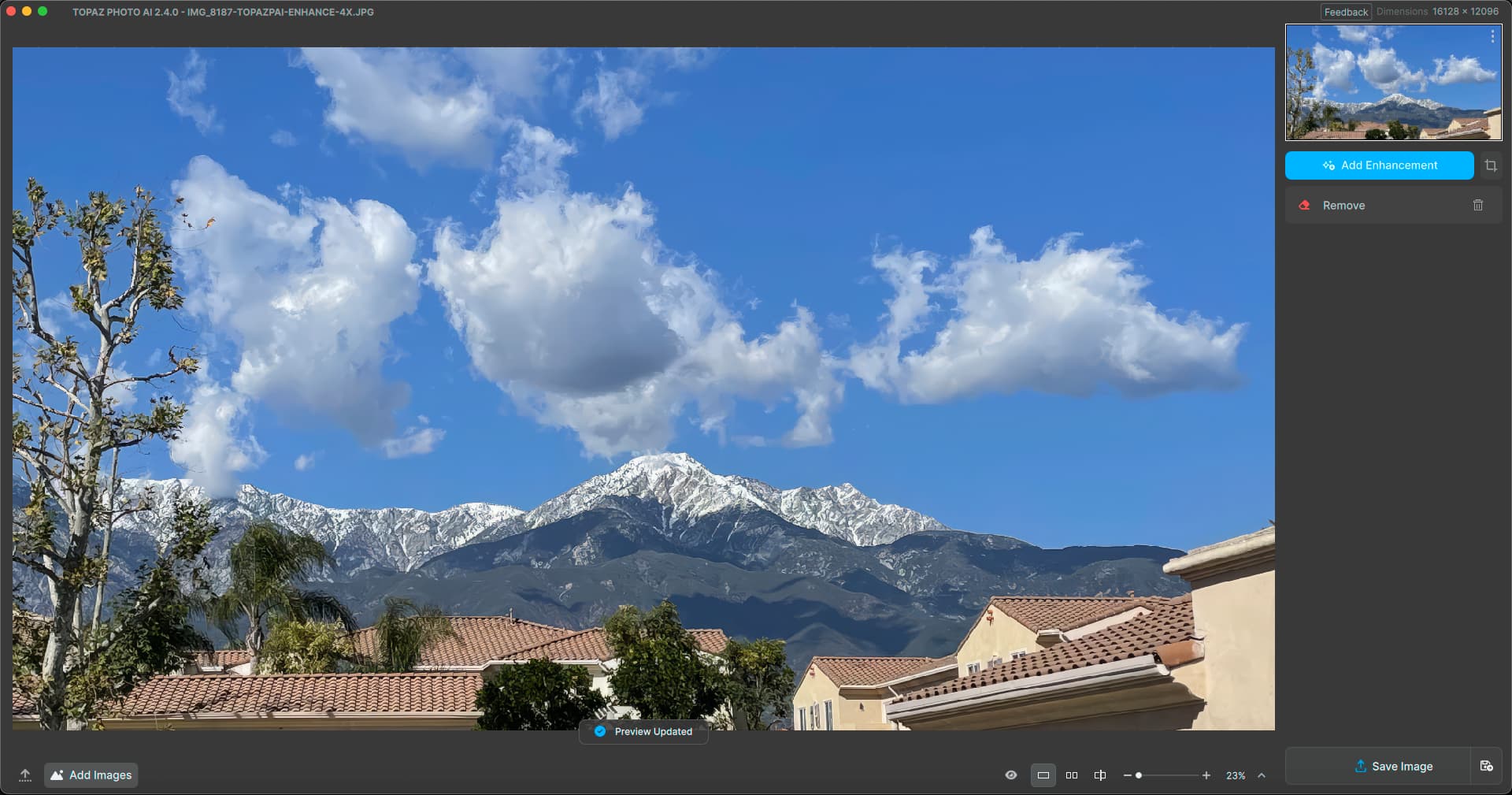 Using Photo AI to radically enhance a purposely left wide iPhone scenic, shot today in SoCal.