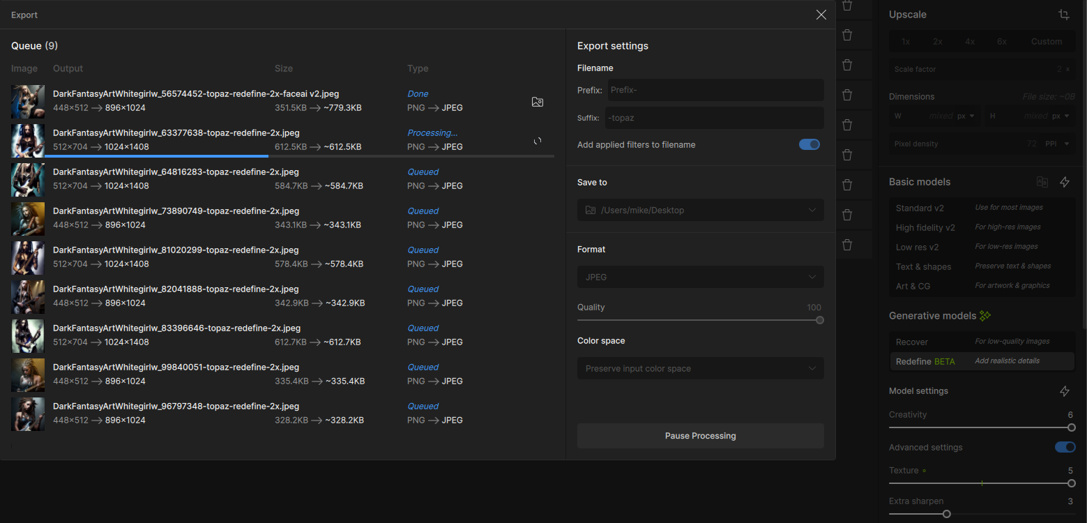 If I drop a bunch of pictures in TPAI, and process them, the Queue display shows that all are resized, if smaller, but only the first is actually resized. All the other output files are the same size as the original, though they are given filenames that indicate that they have been resized. to 2048W or 2048H.