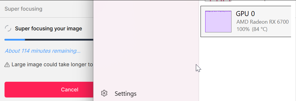 If you are limited by your hardware, you should try the old Sharpen. It does a very similar job in a fraction of the time as Super Focus. The problem is that the old software is discontinued and should no longer be available. But if you are an old user, go back to using it!