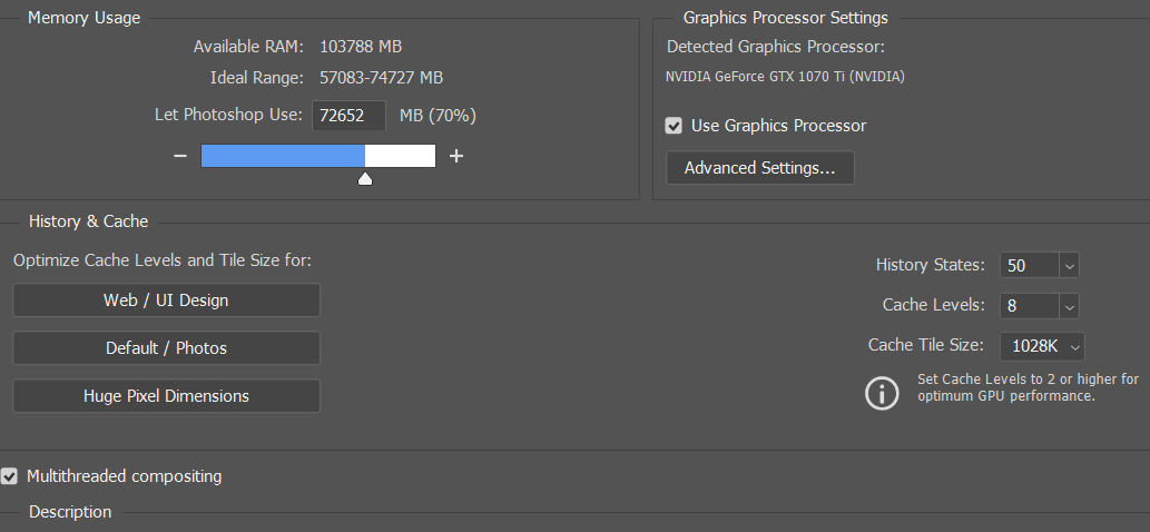 Photoshop Performance settings: