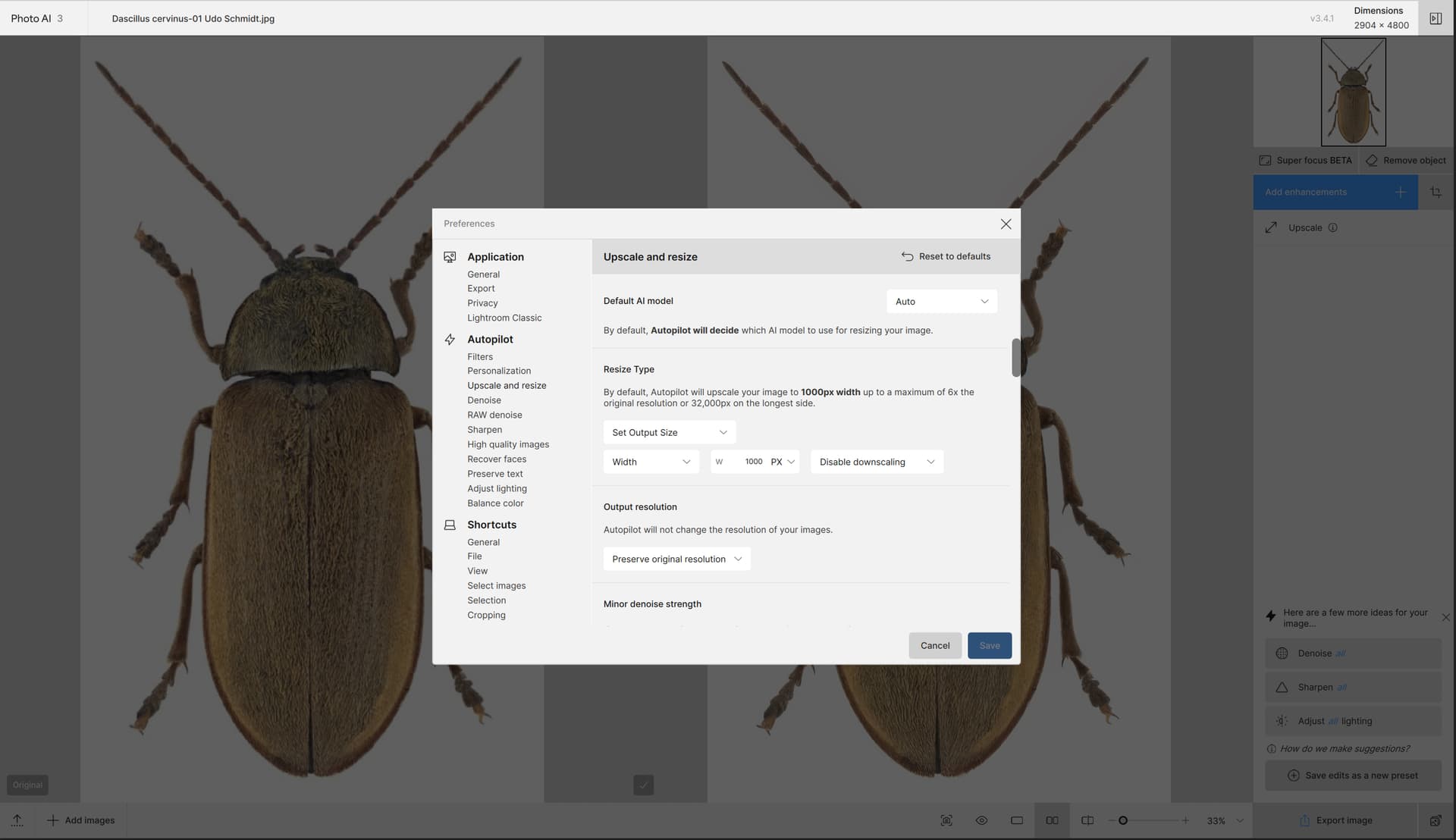 - However, in the Preferences I have told Autopilot to upscale to 1000px width. Why has the result image the size 2904x4800px?