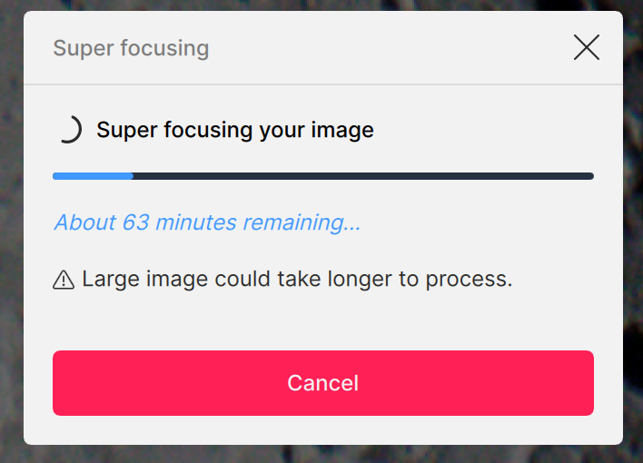 I can’t believe I’ve spent nearly 60 minutes waiting for one single photo to complete ‘Super Focus’ and I accidentally hit the esc key on my keyboard thinking I was in a webpage and the 60 minutes of completed ‘Super Focus’ has gone!!!