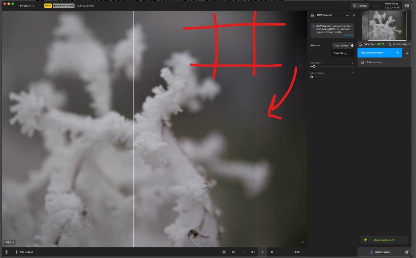 @michaelezra - while there is a Grid issue happening, it is not the same that you have. It happens on skies and backgrounds only. This grid here is a processing error, and we can troubleshoot what is causing this if you send the original file to support@topazlabs.com - Also send us your logs in this email, by opening Photo AI, Help menu, Open Logs folder.