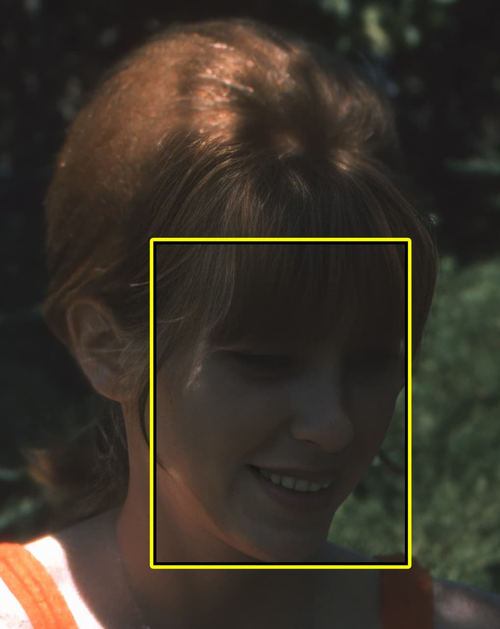 The attached images are the original, the face recovery preview and the final render. You can see that the top half and the left side of the model’s hair is blurry while TAI perfectly rendered a square just larger than the model’s face. Hmm, that won’t do.