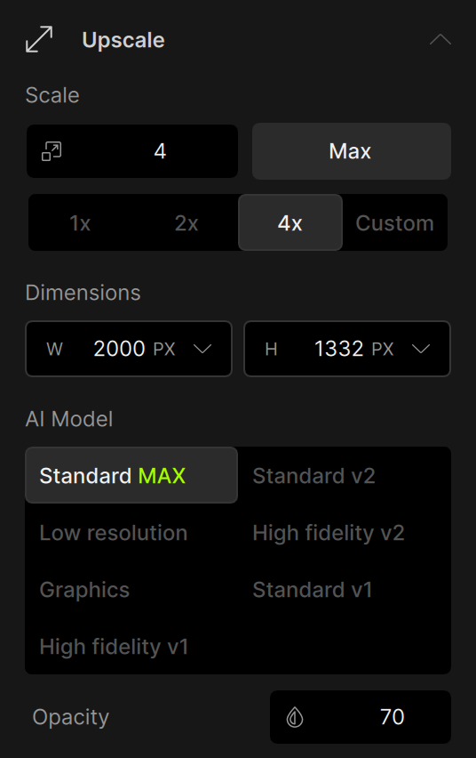 To use Standard Max, add Upscale to your image and pick it from the AI model grid select.